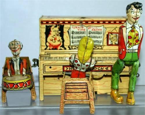 UNIQUE ARTS LIL ABNER DOGPATCH PIANO. MAN IS MISSING ARMS. COPYRIGHT 1945.