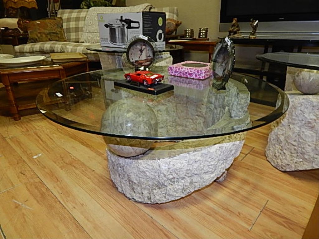 UNIQUE DESIGNED GLASS TOP COFFEE TABLE - TILED BASE - NEW RETAIL $500