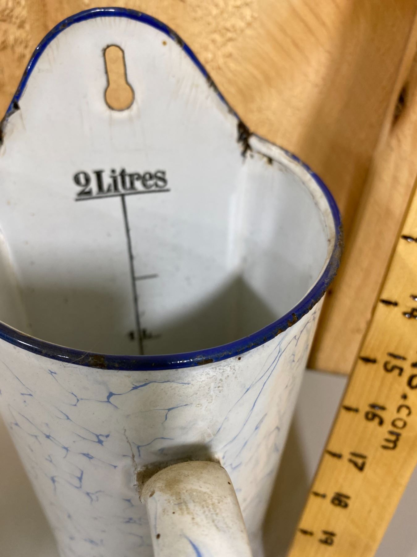 UNIQUE ENAMEL JUG W/ SPOUT & MEASUREMENTS