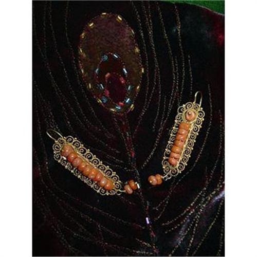 <tr><td>Title:UNIQUE SHAPED GOLD AND CORAL EARRINGS</td></tr>