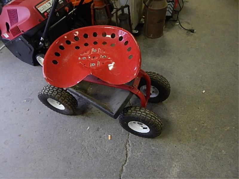 UNIQUE SHOP SEAT - 4 PNEUMATIC WHEELS AND SWIVEL TRACTOR SEAT - GREAT FOR SHOP OR GARDEN OR WHAT EVER.......