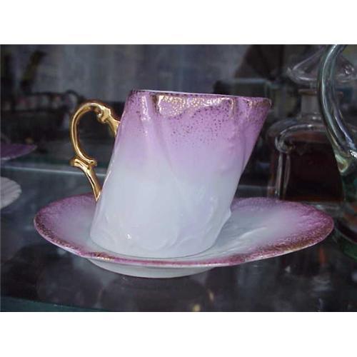 For the collector of Victorian demitasse cup and saucers this one is for you! Unique angle tilted teacup with oval like shape saucer-most unique! The set is in such a pretty pink color and adorned with pure gold, in very nice condition-no chips or cracks. What absolutely beautiful cup and saucer to add to your collection! A fabulous gift for the person who has everything! Shipping within North America will be 7.00 International slightly higher.