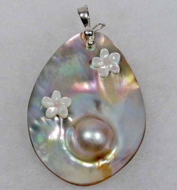 UNIQUE VINTAGE MOTHER OF PEARL PENDANT W/ STERLING SILVER CLASP