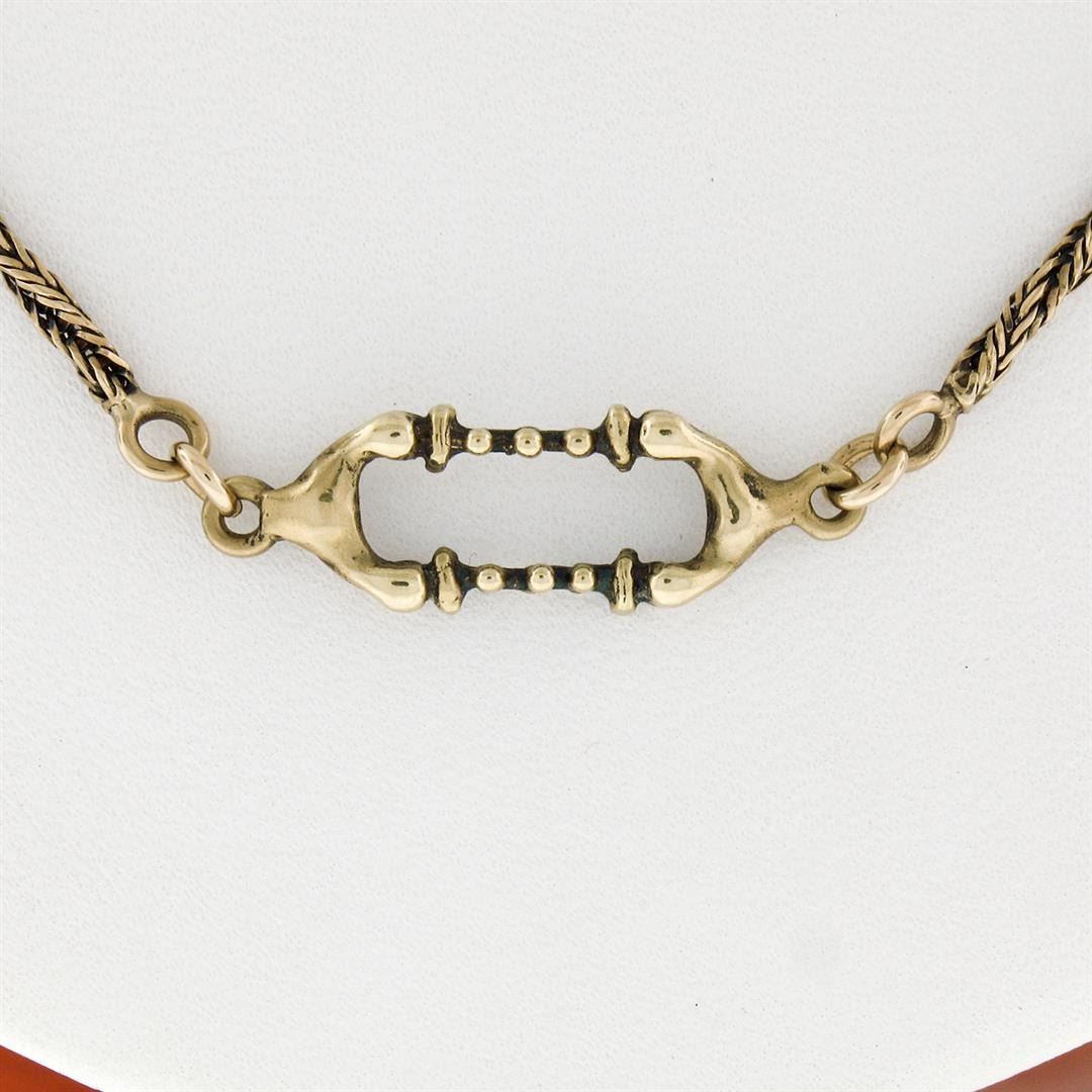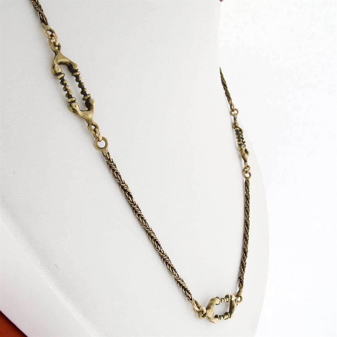 A vintage solid 18k yellow gold chain necklace. 20 inch unique twisted and open bar link chain, 16.08 grams total weight.