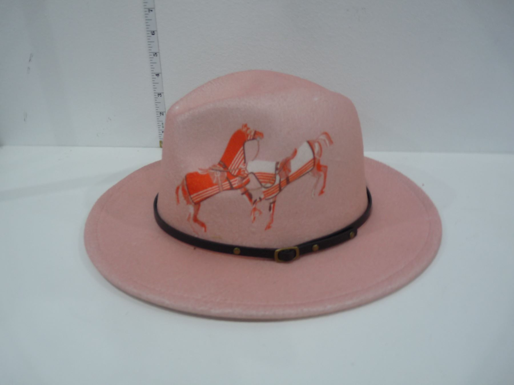 UNISEX WIDE BRIM WOOL FELT FEDORA HAT WITH BELT BUCKLE