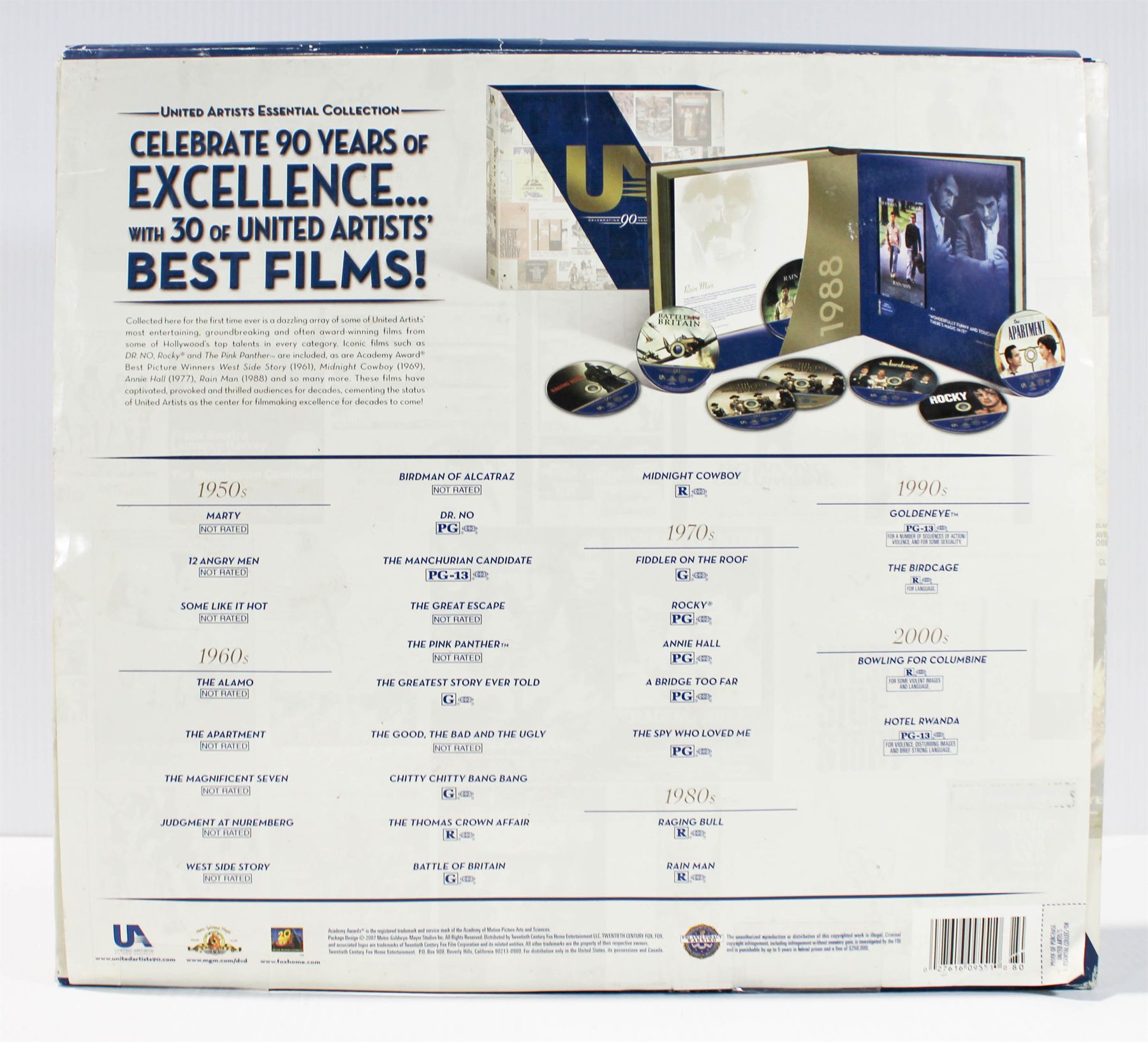 UNITED ARTISTS CELEBRATE 90 YEARS OF EXCELLENCE WITH 30 OF THEIR BEST FILMS! RATINGS RANGE FROM G-R AND DVDS COME IN A LOVELY DISPLAY BOX DESIGNED LIKE A BOOK.