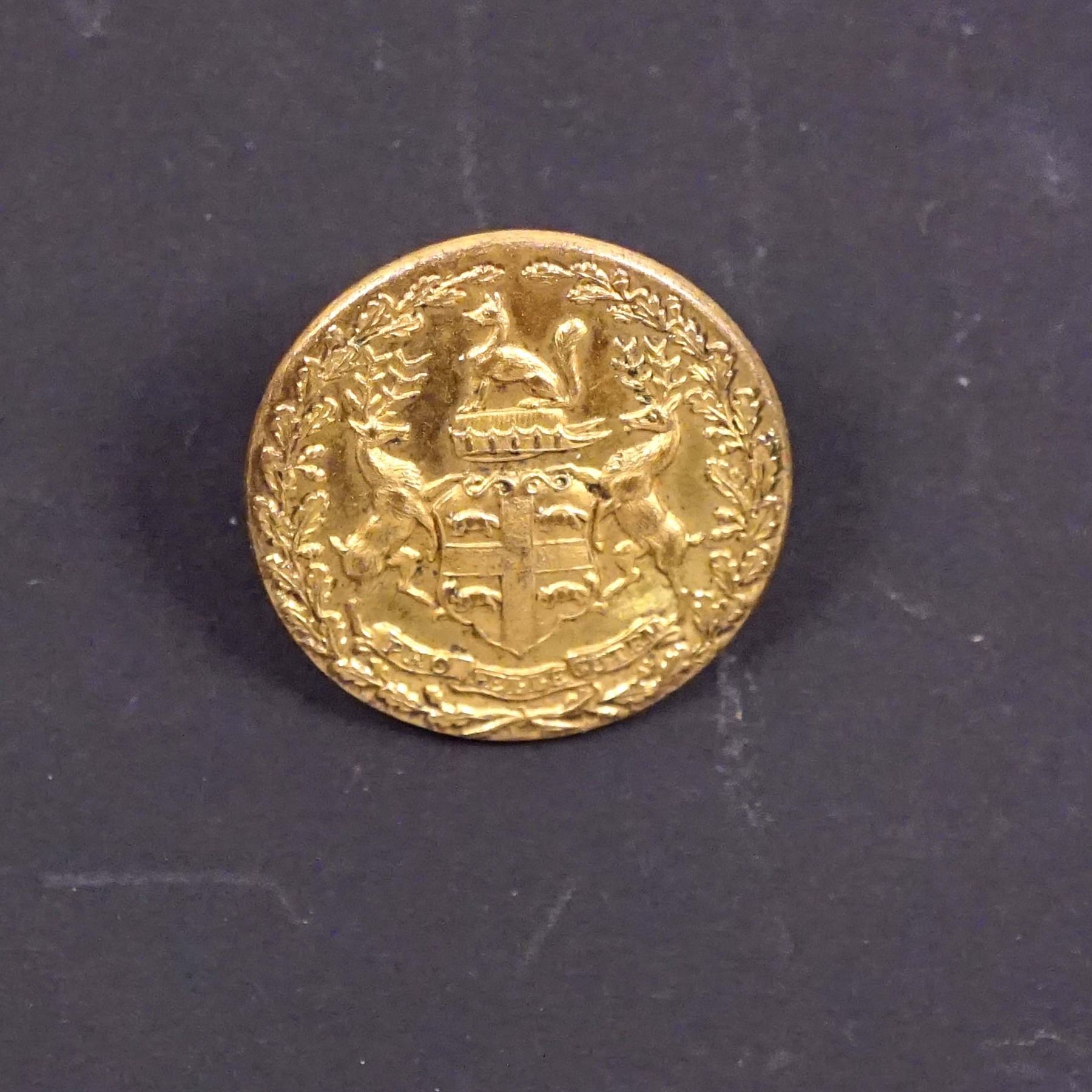 Coat of Arms for Hudsons Bay Co.surrounded by a wreath of Oak Leaves. The "U" in CUTUM is re-cut. Reverse has no manufacturer's name but states "WARRANTED BEST QUALITY" and a raised centre line for shank alignment. An Omega shank welded and plated. Plating 100% obverse and reverse. The 2 x 2 holder had "near Lindsay, Ontario"???