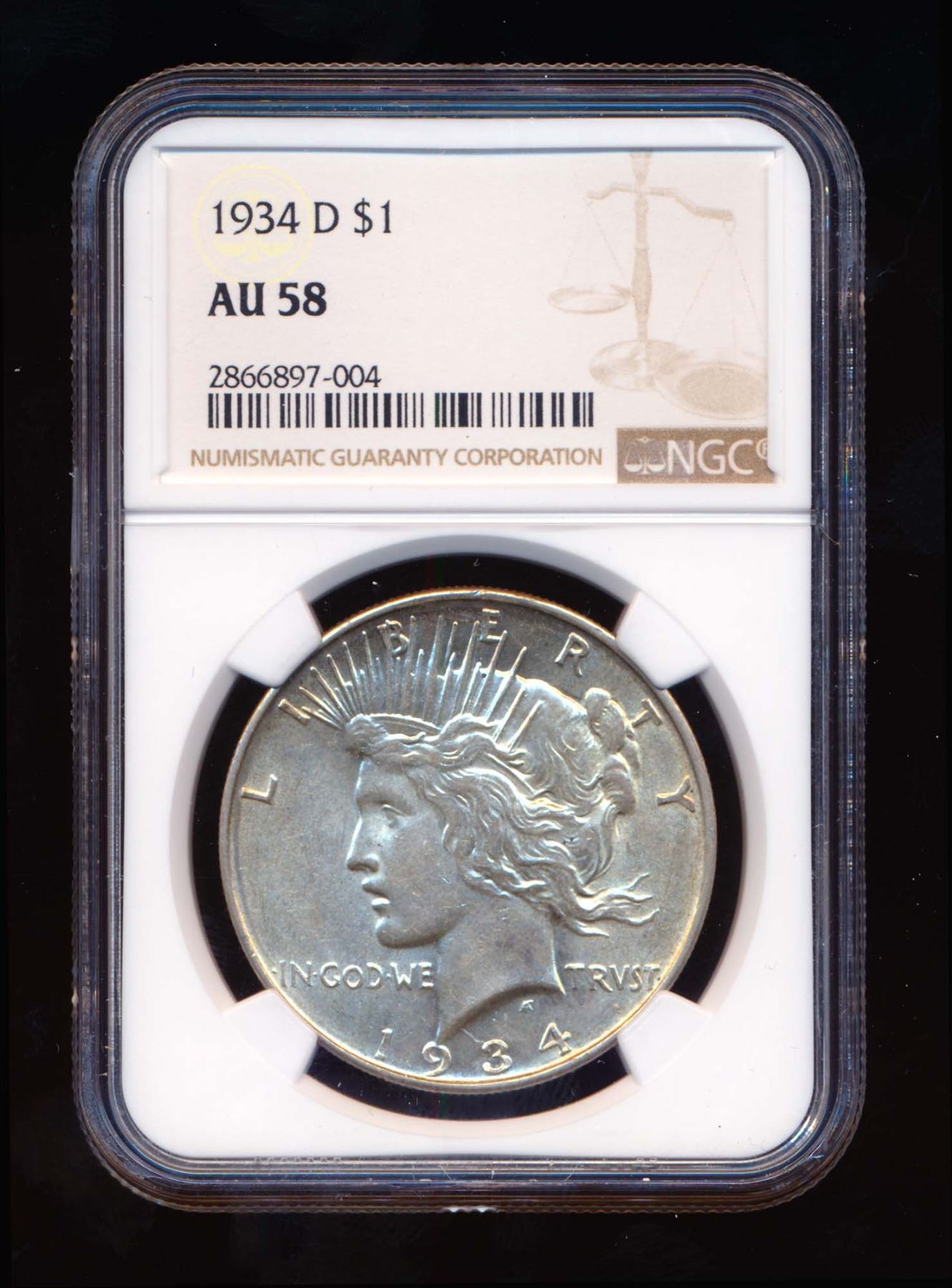 UNITED STATES $1.00 1934 Liberty Head 26.8 gm. NGC AU-58