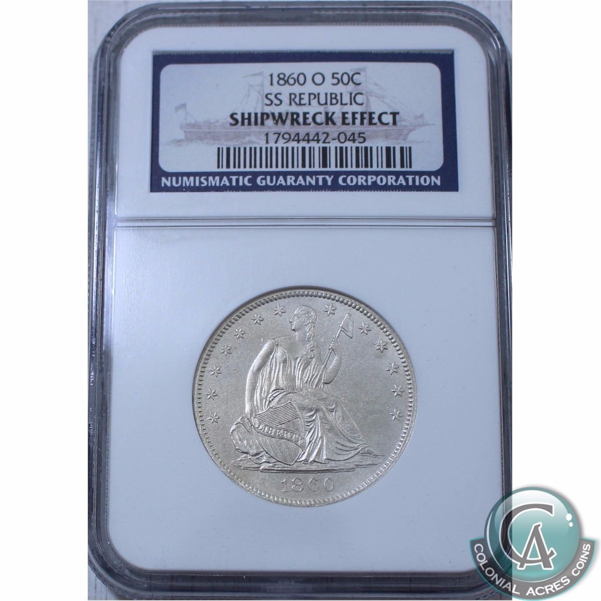 UNITED STATES; 1860-O S.S. Republic U.S. Mint Issue Seated Liberty NGC Certified Half Dollar; Shipwr
