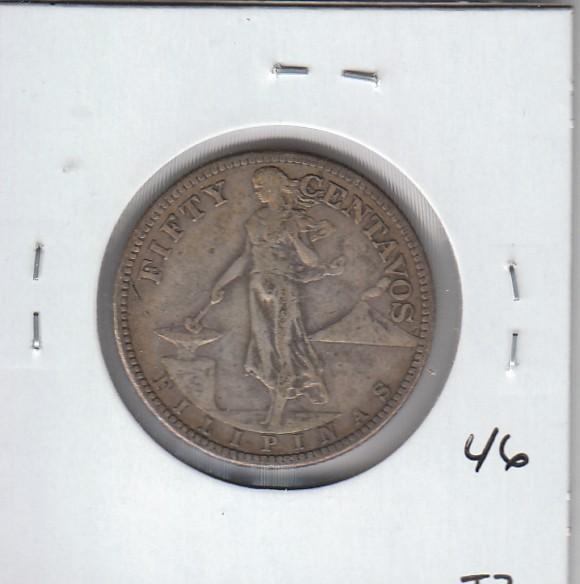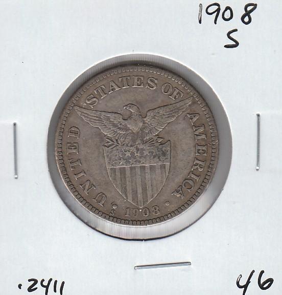 UNITED STATES 1908 S 50 CENTAVOS FILIPINAS .2411 OUNCE OF SILVER