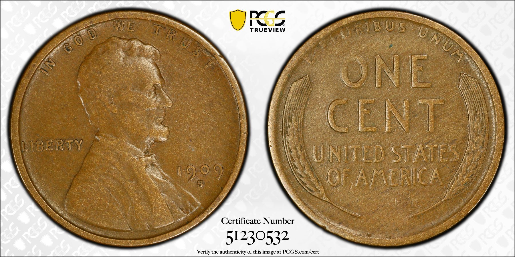 UNITED STATES: AE cent, 1909-S, KM-132, Lincoln type, scarce date and mint, PCGS graded VF30.