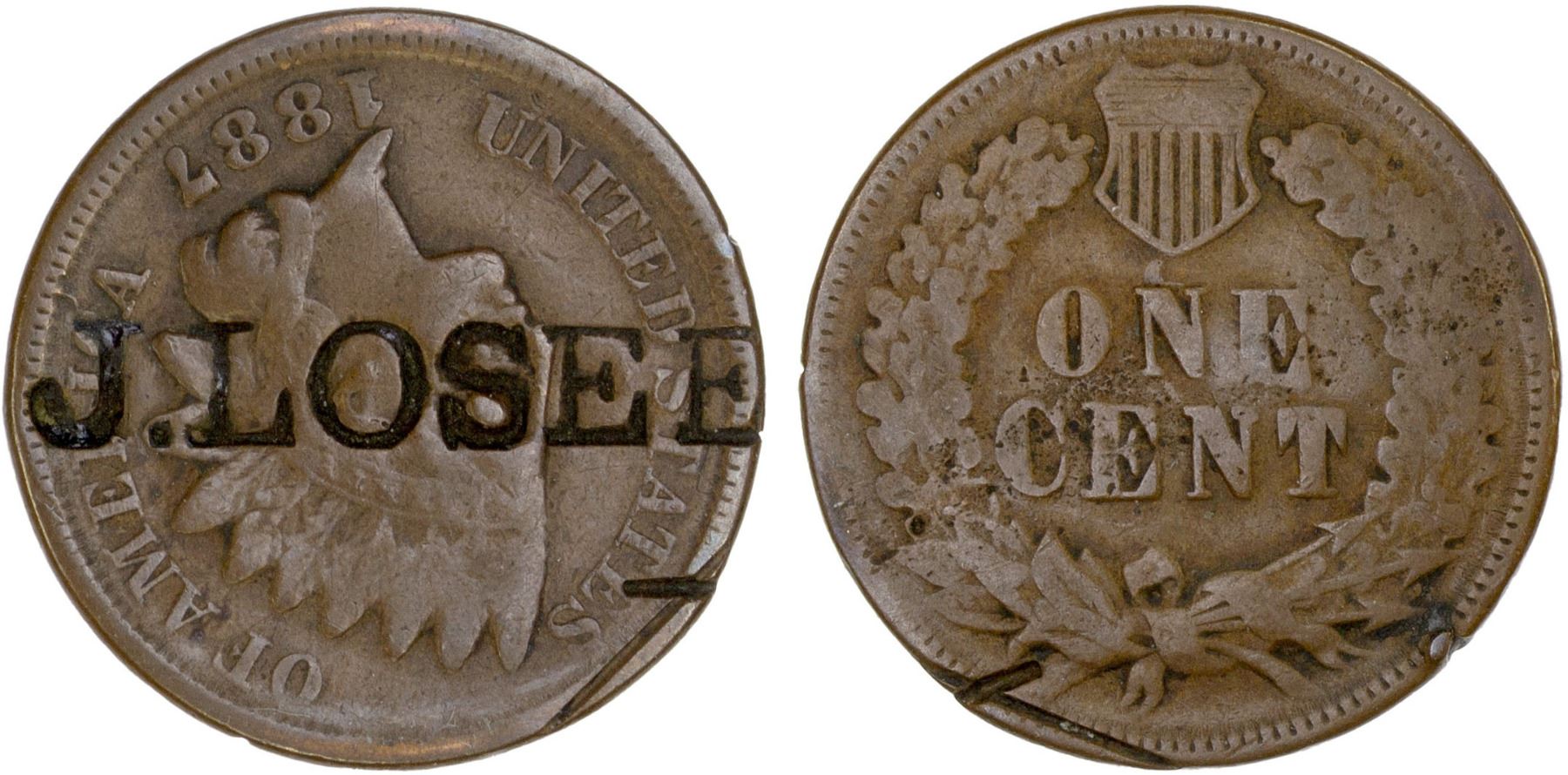 UNITED STATES: AE counterstamped cent, ND(1887), counterstamped J. Losee, Fine.
