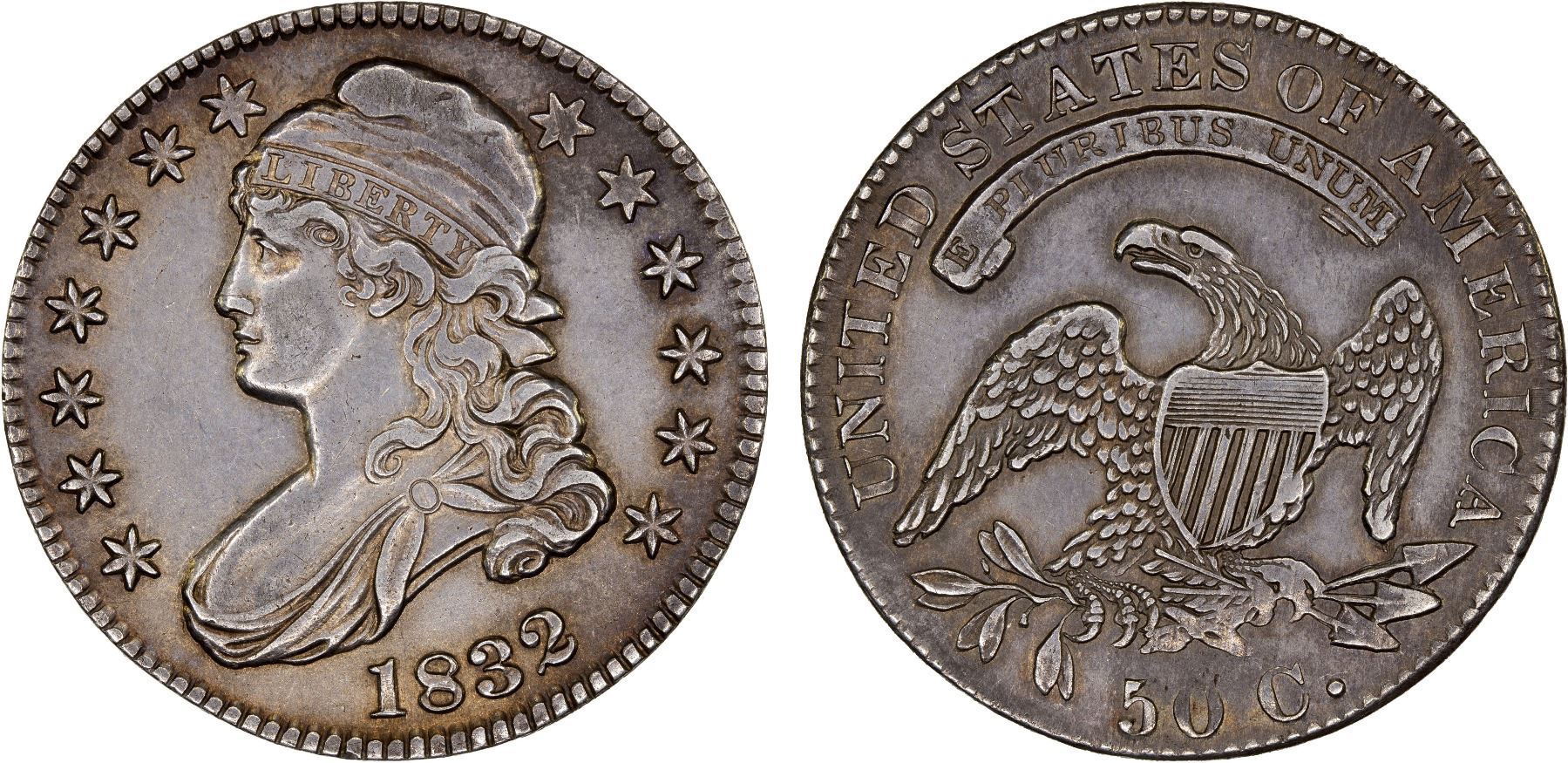 UNITED STATES: AR 50 cents, 1832, KM-37, Capped Bust type, small letters, cleaned, Choice VF, ex Dr. Robert A. Rosenfeld Collection.