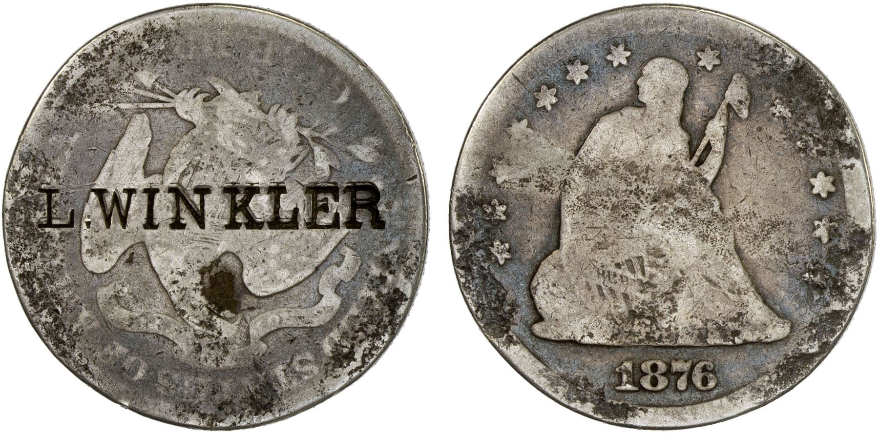 UNITED STATES: AR counterstamped 25 cent, ND(1876), counterstamped L. Winkler, AG.