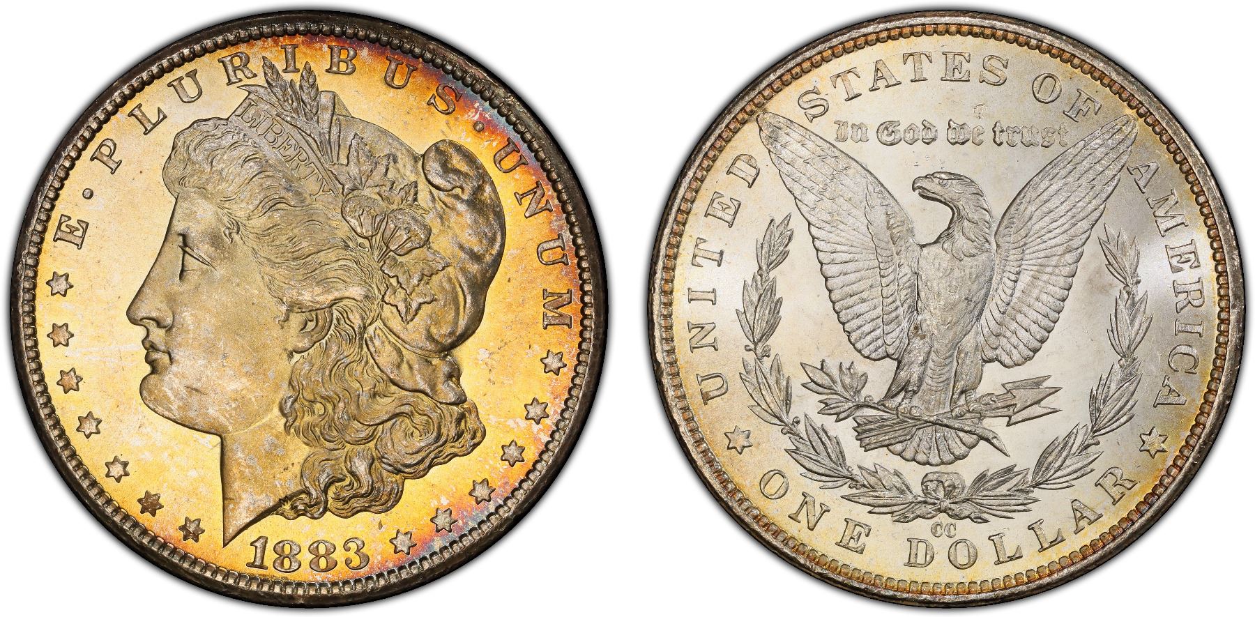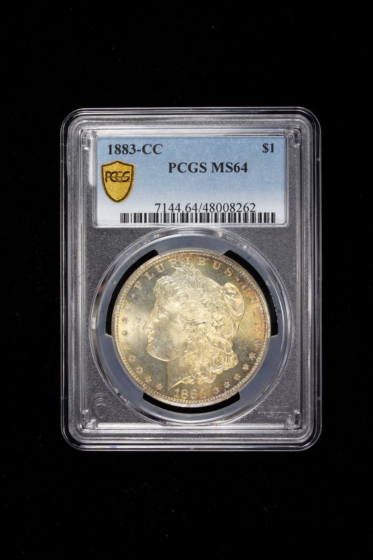 UNITED STATES: AR dollar, 1883-CC, KM-110, Morgan type, a wonderful lustrous example! PCGS graded MS64.