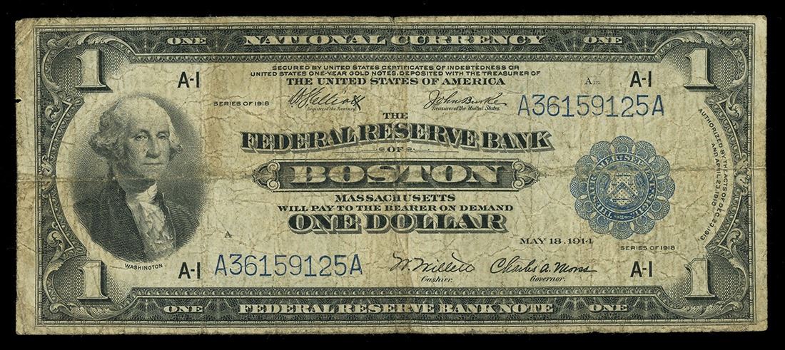 UNITED STATES, Federal Reserve Bank of Boston, $1 Federal Reserve Bank Note, series of 1918, serial