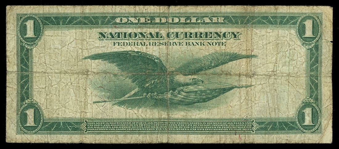UNITED STATES, Federal Reserve Bank of Boston, $1 Federal Reserve Bank Note, series of 1918, serial Z60644928D, Elliott-Burke. Fr-710. Fine, small split at center.