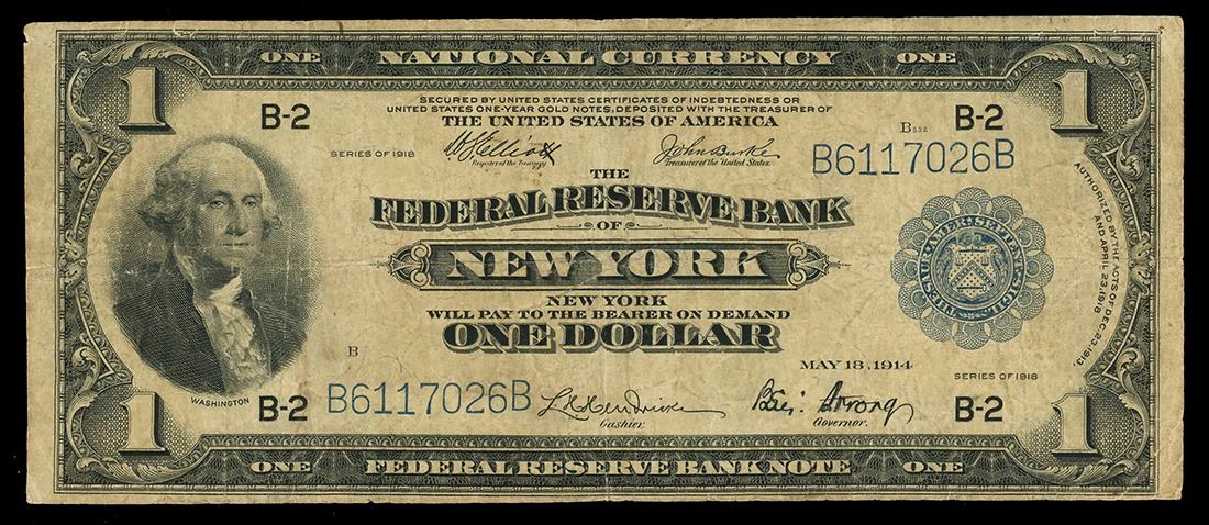 UNITED STATES, Federal Reserve Bank of New York, $1 Federal Reserve Bank Note, series of 1918, seria