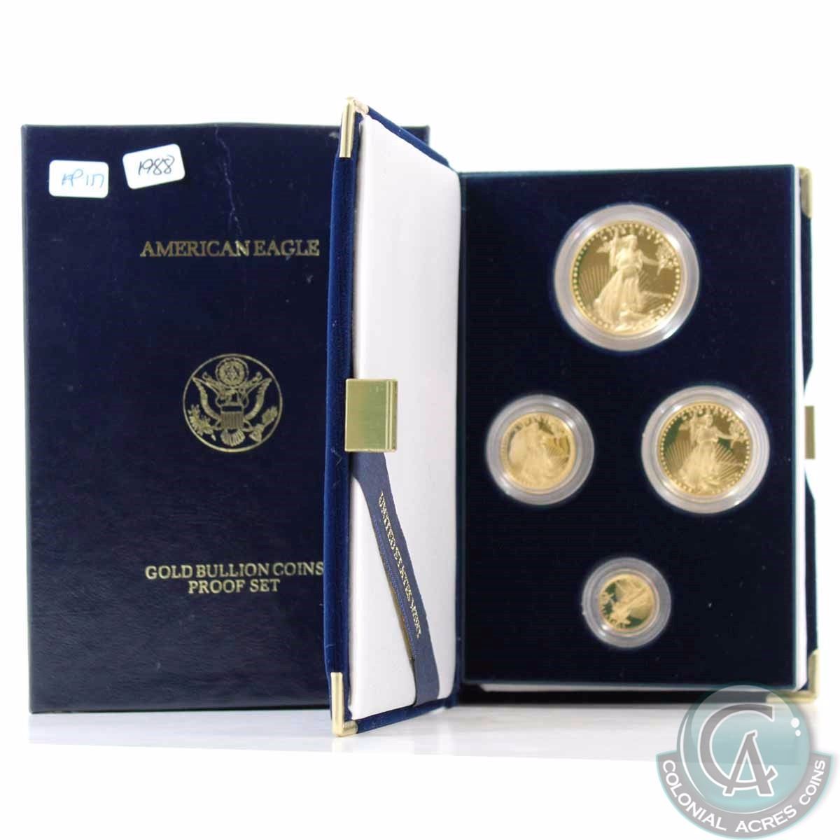 UNITED STATES; Gold 1988 4-coin Proof Eagle Set in Original Mint Packaging and C.O.A. Set contains 1oz, 1/2oz, 1/4oz & 1/10th oz coins (1.85 oz total)