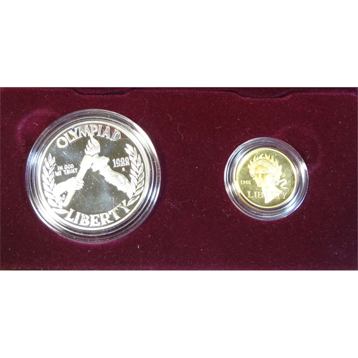UNITED STATES MINT 1988 OLYMPIC COINS PROOF SILVER DOLLAR & GOLD $5
