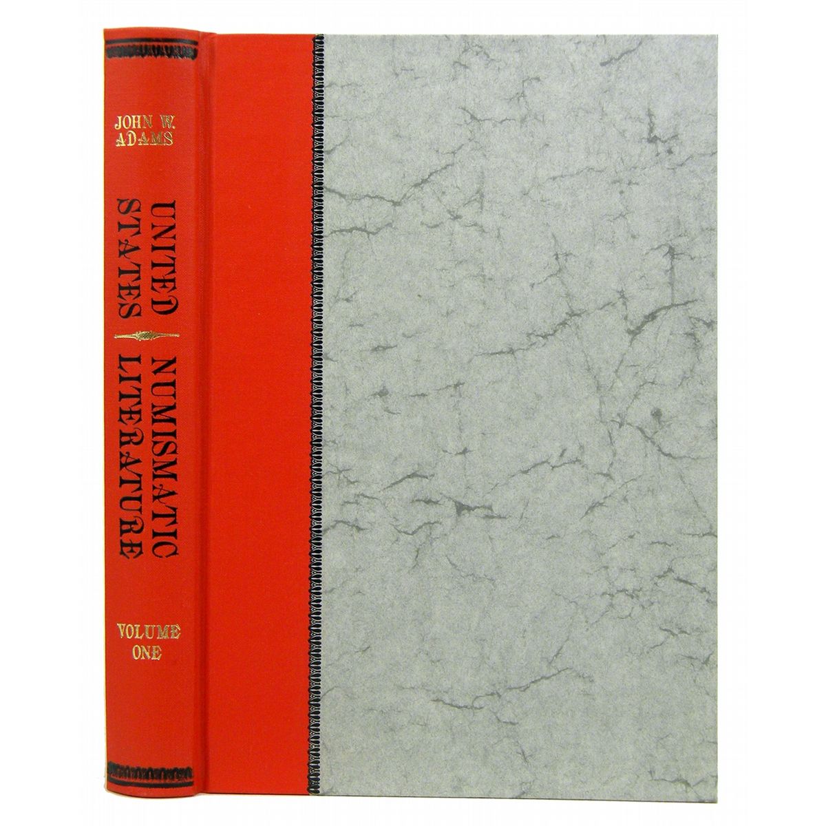 Adams, John W. UNITED STATES NUMISMATIC LITERATURE. VOLUME I: NINETEENTH CENTURY AUCTION CATALOGS. Mission Viejo, California: George F. Kolbe, 1982. 4to, original red cloth and boards, lettered and decorated in gilt and black; page edges speckled; printed throughout in red and black. Frontispiece; 270, (2) pages; 22 additional plates; pictorial endpapers. Fine. One of 500 copies printed, bound by hand and printed on acid free paper. Essential.