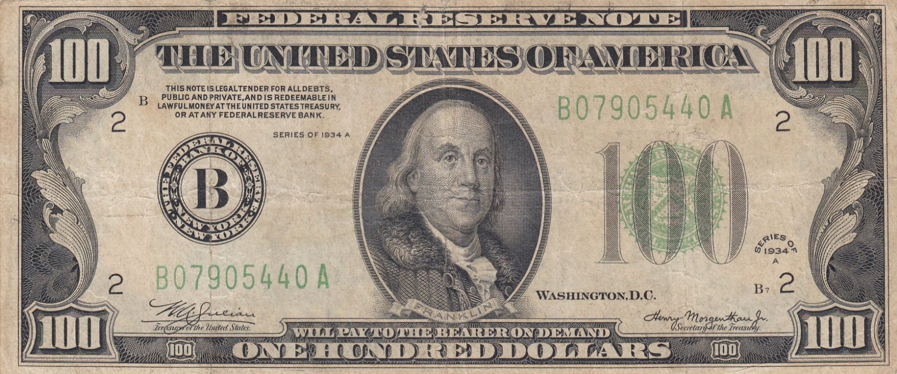 United States of America, 100 Dollars, 1934, VF (-), p433D