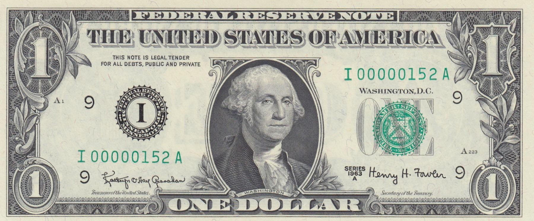 United States of America, 1 Dollar, 1963, UNC, p443, VERY LOW SERIAL NUMBER