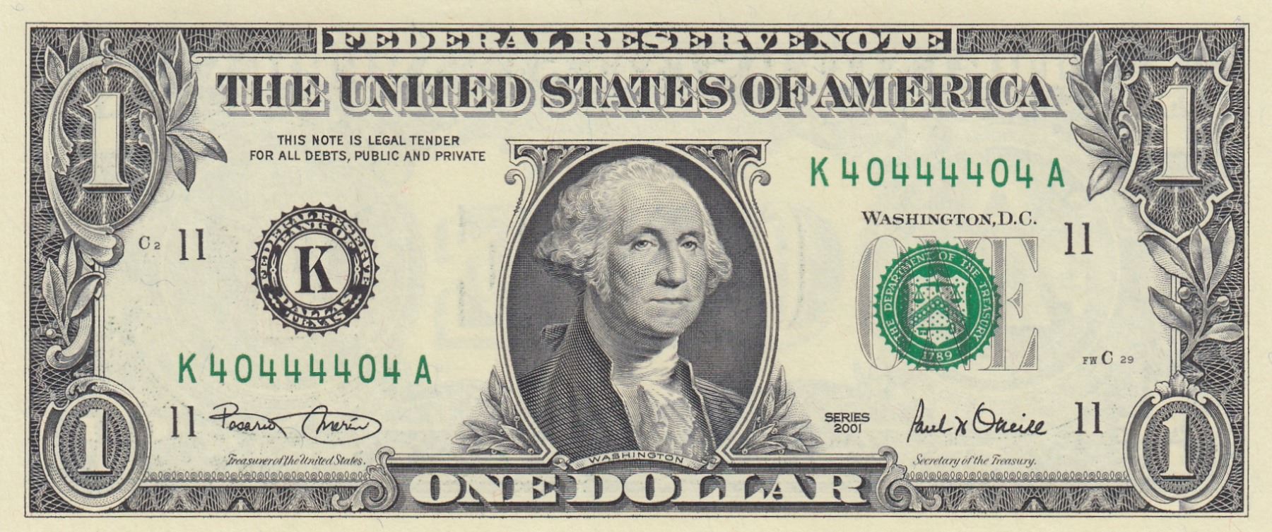 United States of America, 1 Dollar, 2001, UNC, p509, RADAR