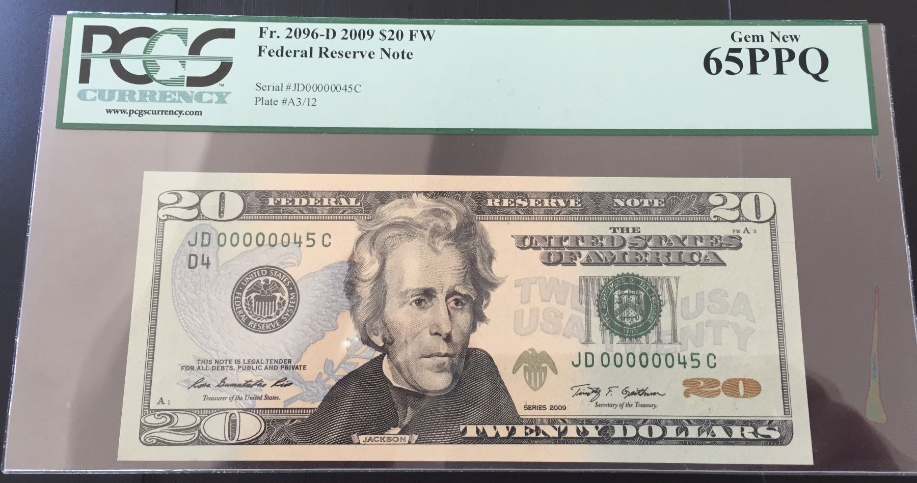 United States of America, 20 Dollars, 2009, UNC, p533, VERY LOW SERIAL NUMBER