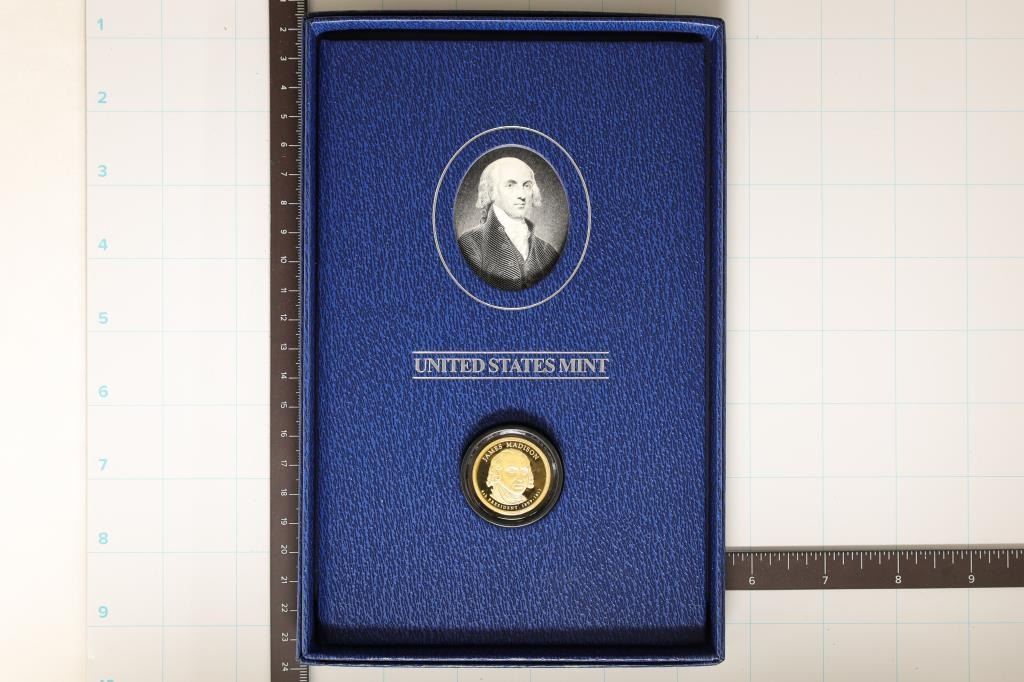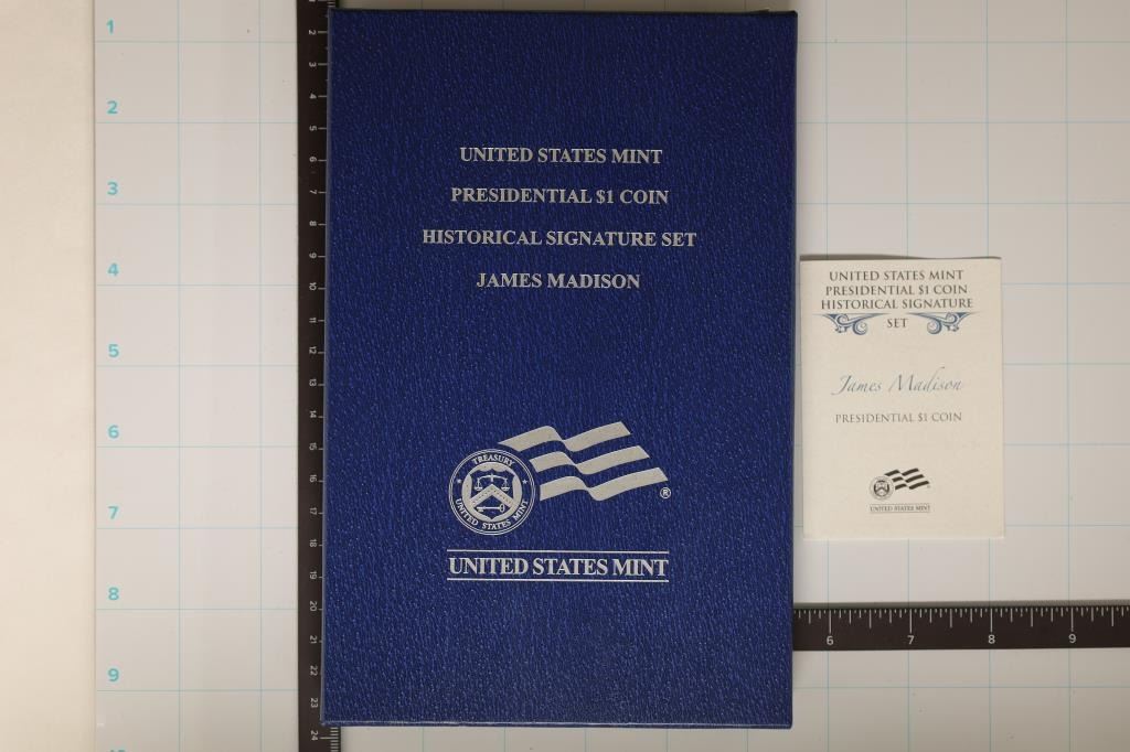 JAMES MADISON IN BLUE FOLIO WITH PORTRIAT. ORIGNAL US MINT PACKAGING