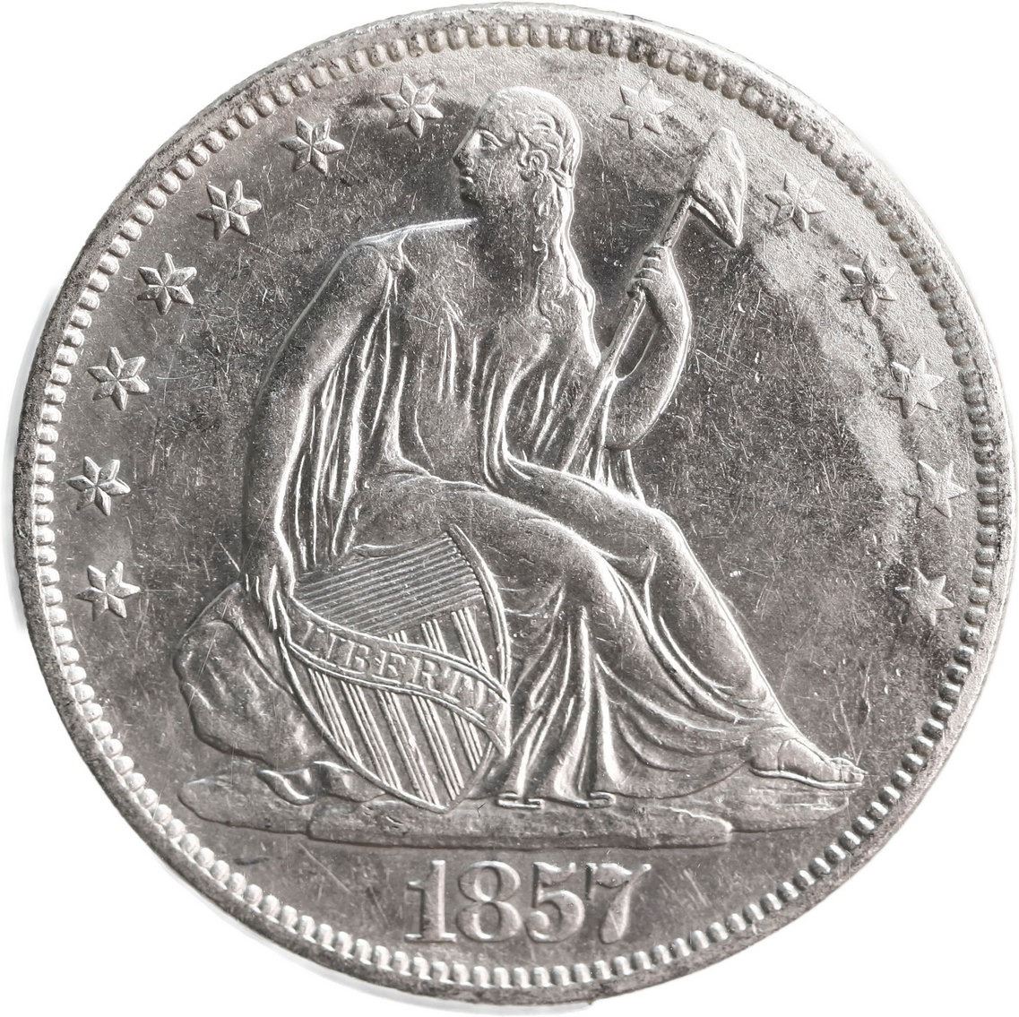 UNITED STATES, Philadelphia mint, Seated Liberty half dollar, 1857, NGC Shipwreck Effect (SS Republi