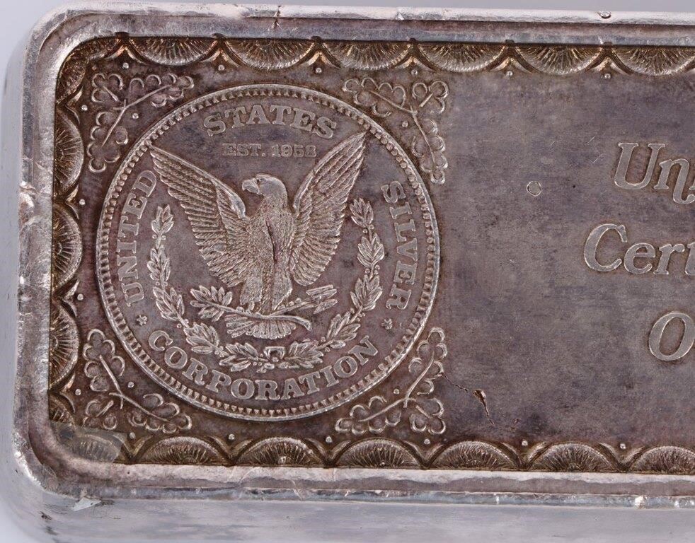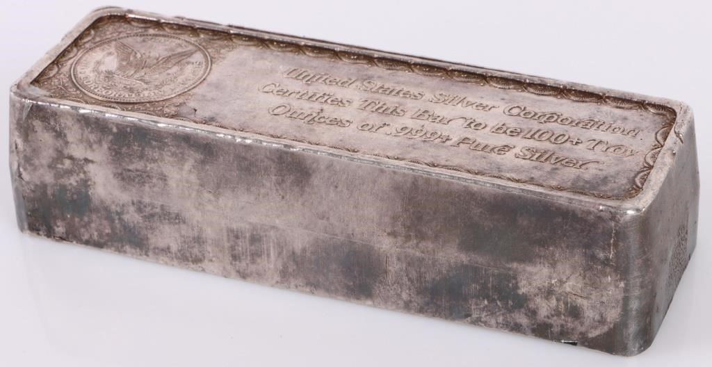 United States Silver Corporation 102 oz silver bar.