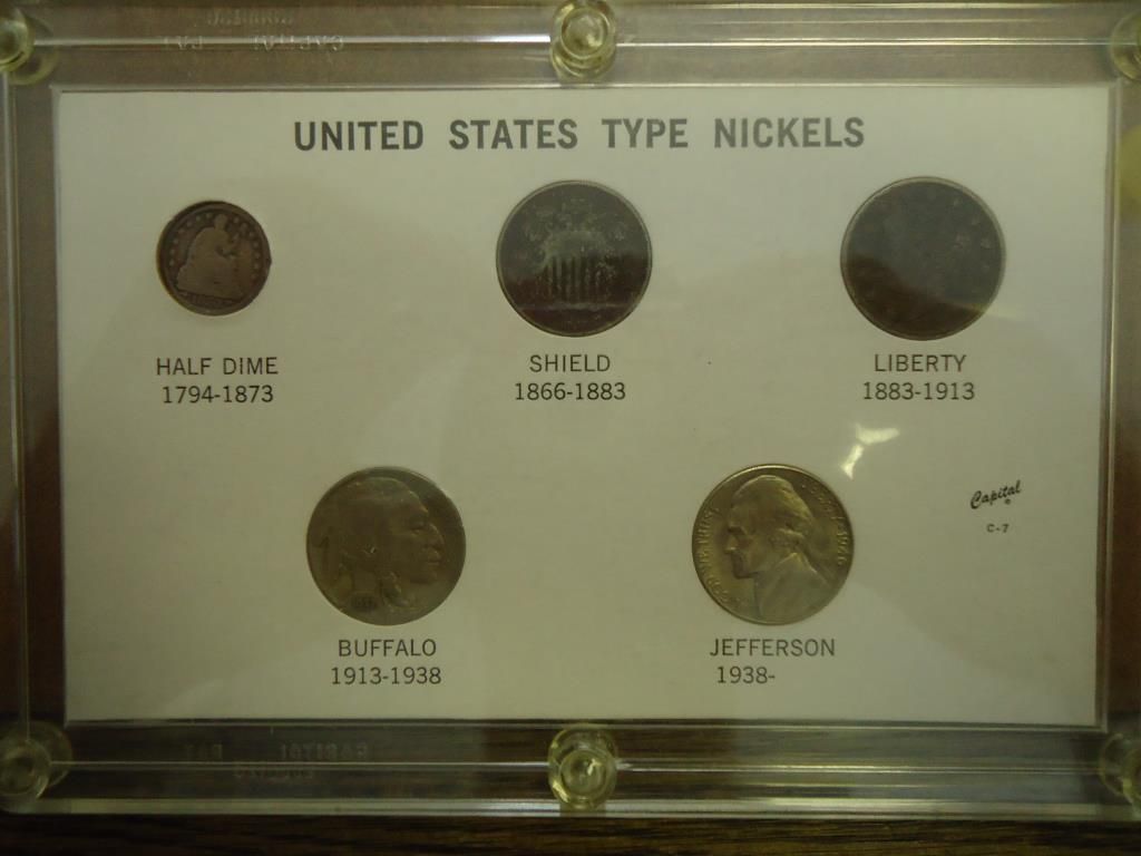 1853 HALF DIME, 1867 SHIELD NICKEL, 1912 LIBERTY "V" NICKEL, 1937-S BUFFALO NICKEL AND 1946-S JEFFERSON NICKEL IN NICE PLASTIC CASE