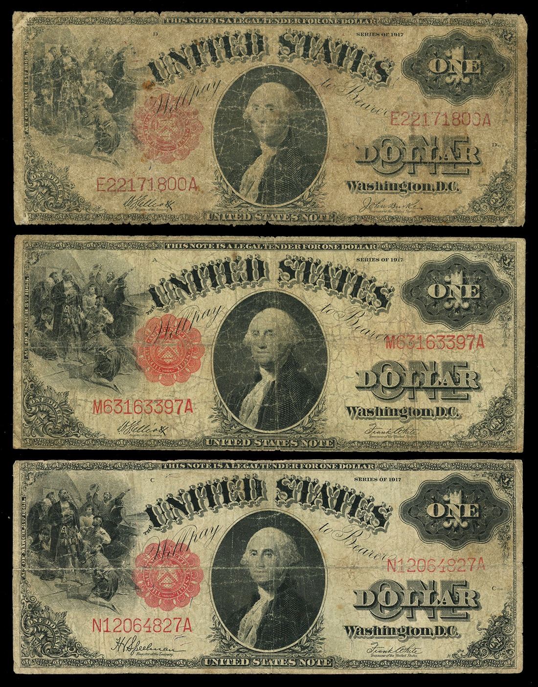 UNITED STATES, lot of three $1 United States Notes, series of 1917.