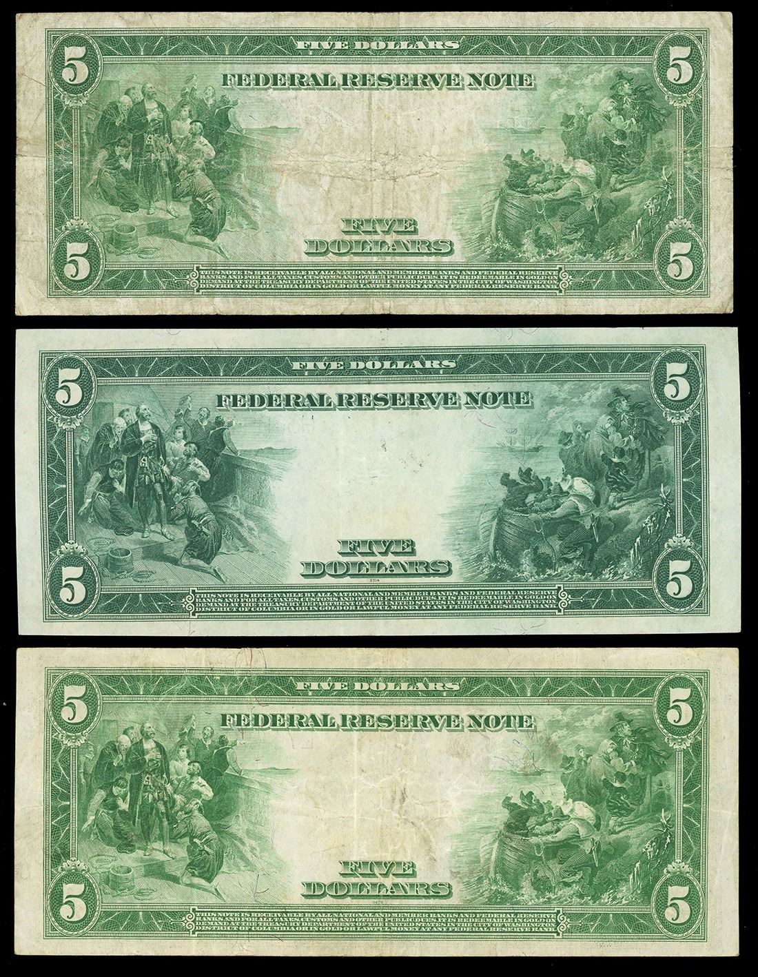 UNITED STATES, lot of three $5 Federal Reserve Notes, series of 1914.