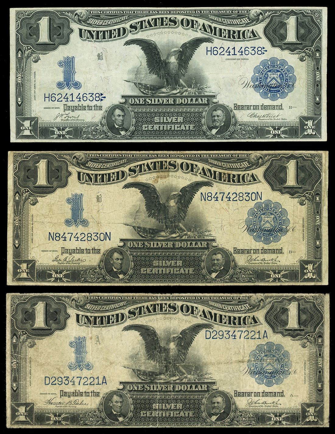 UNITED STATES, lot of three "black eagle" $1 Silver Certificates, series of 1899.