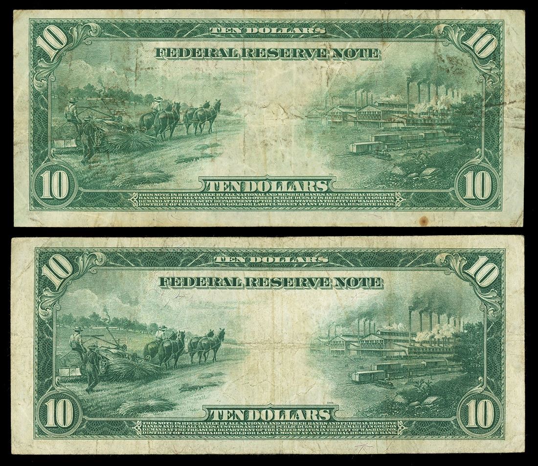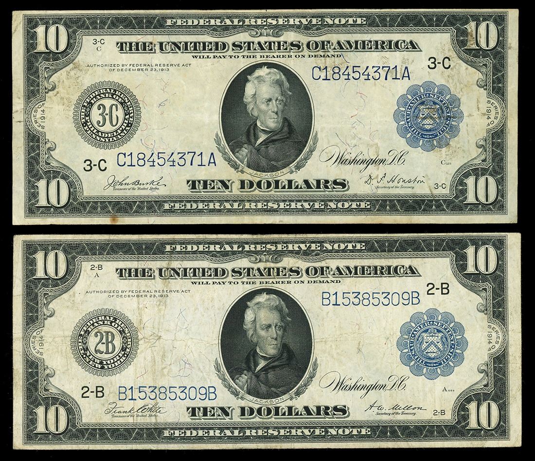 UNITED STATES, lot of two $10 Federal Reserve Notes, series of 1914.