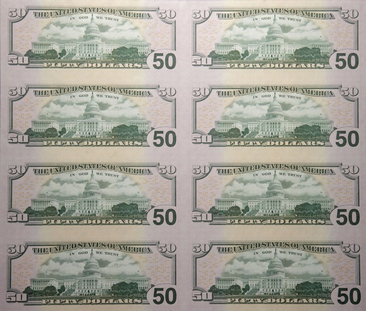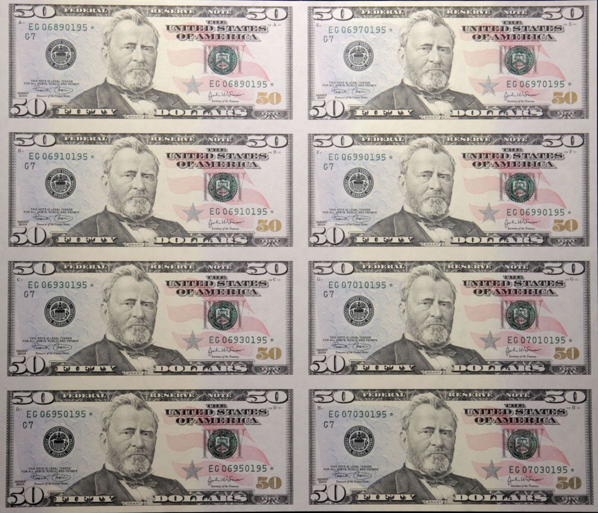 $50.00. 2004. KL.4756*. An uncut block of 8 Star replacement notes. Choice Unc-63.