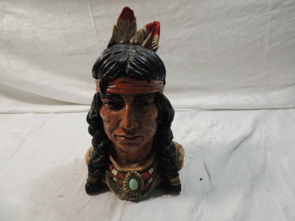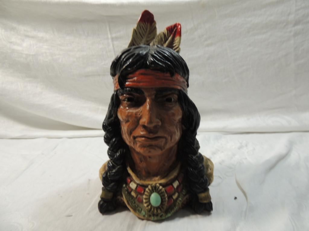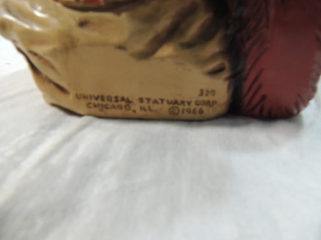 UNIVERSAL STATUARY CORP, INDIAN BRAVE HEAD STATUE, 1974, CHICAGO, # 605, AMERICAN INDIAN BUST, NATIVE AMERICAN BUST AS SHOWN SEE PHOTO FOR MORE DETAILS.