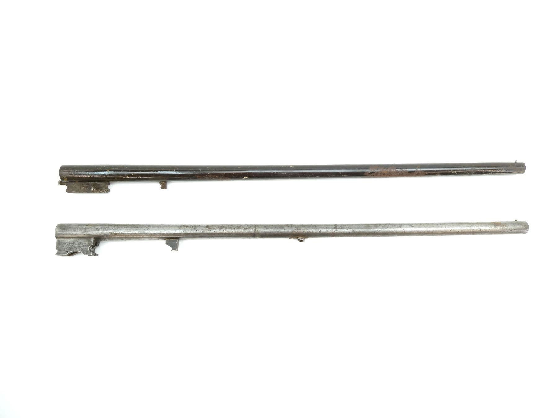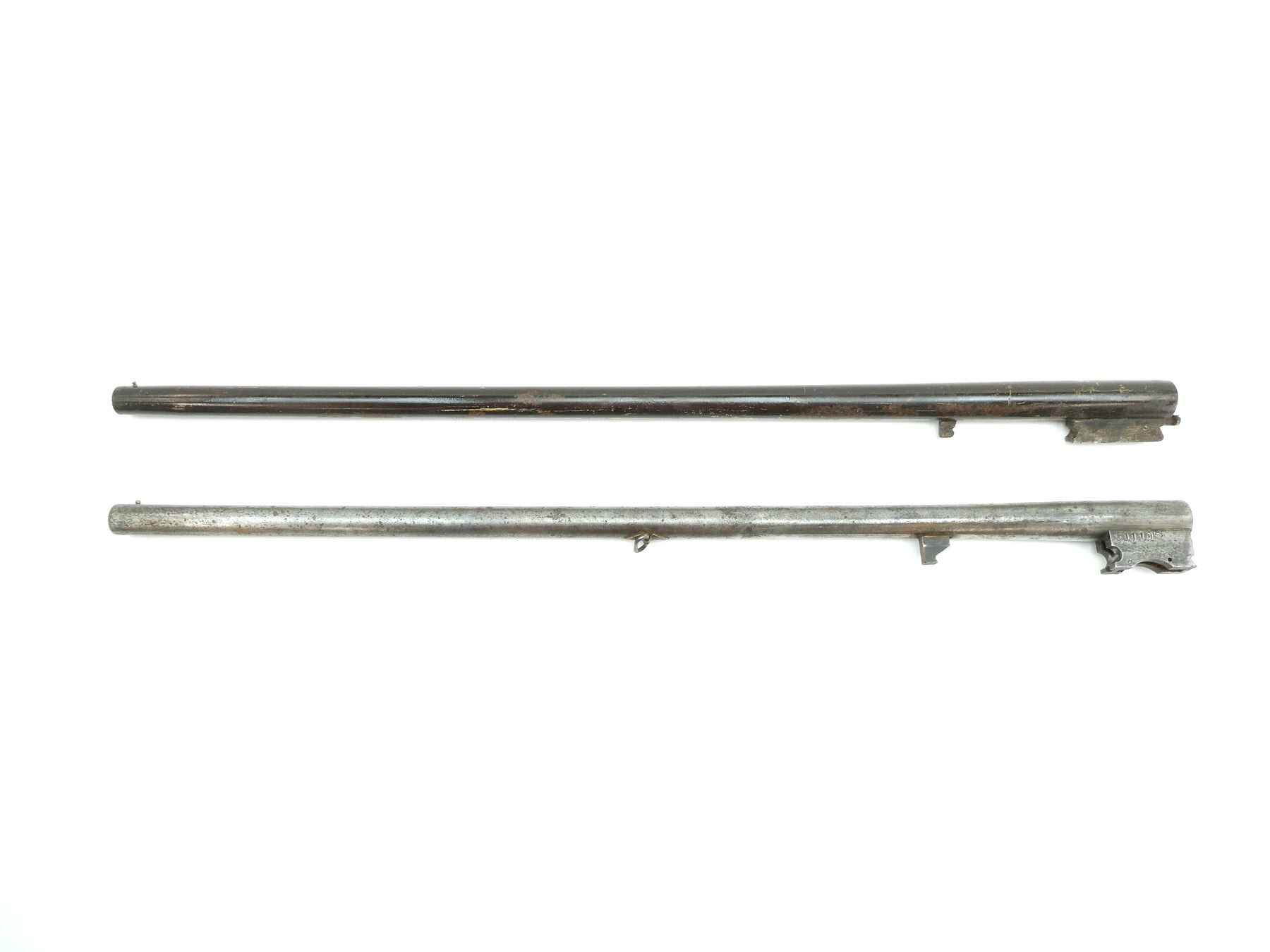 LOT INCLUDES; (1) UNKNOWN BARREL, FIXED FULL CHOKE, STEEL CONSTRUCTION, 12 GAUGE 2 3/4", BORE IS VERY GOOD, MARKED: "611105", ETC., WITH FRONT BEAD SIGHT, OAL APPROX. 30" & (1) UNKNOWN BARREL, FIXED FULL CHOKE, STEEL CONSTRUCTION, 12 GAUGE 2 3/4", BORE IS FAIR / PITTED, MARKED: "36852", ETC., WITH FRONT BEAD SIGHT, OAL APPROX. 29 7/8". MAY REQUIRE FITTING. SEE PHOTOS.