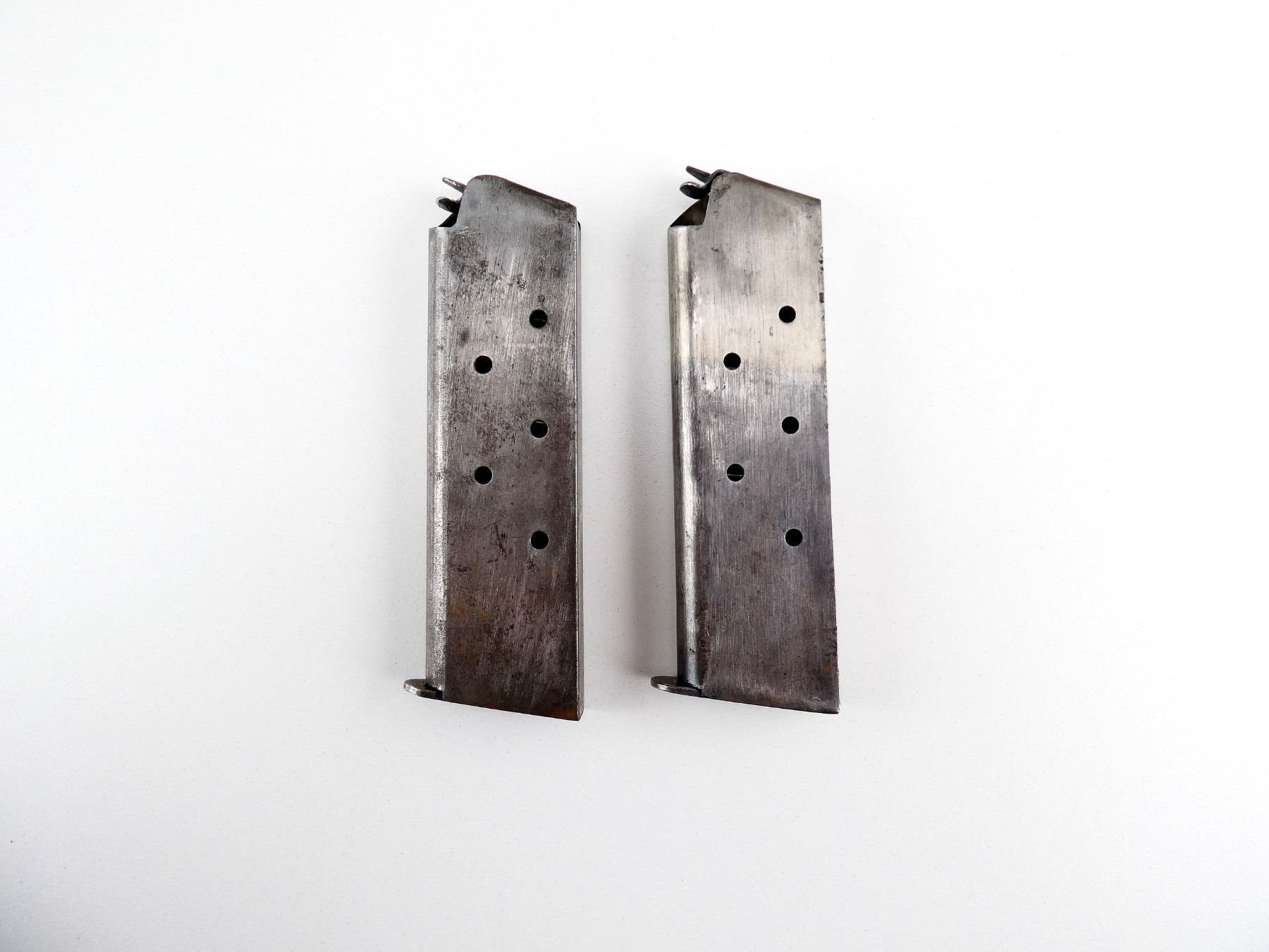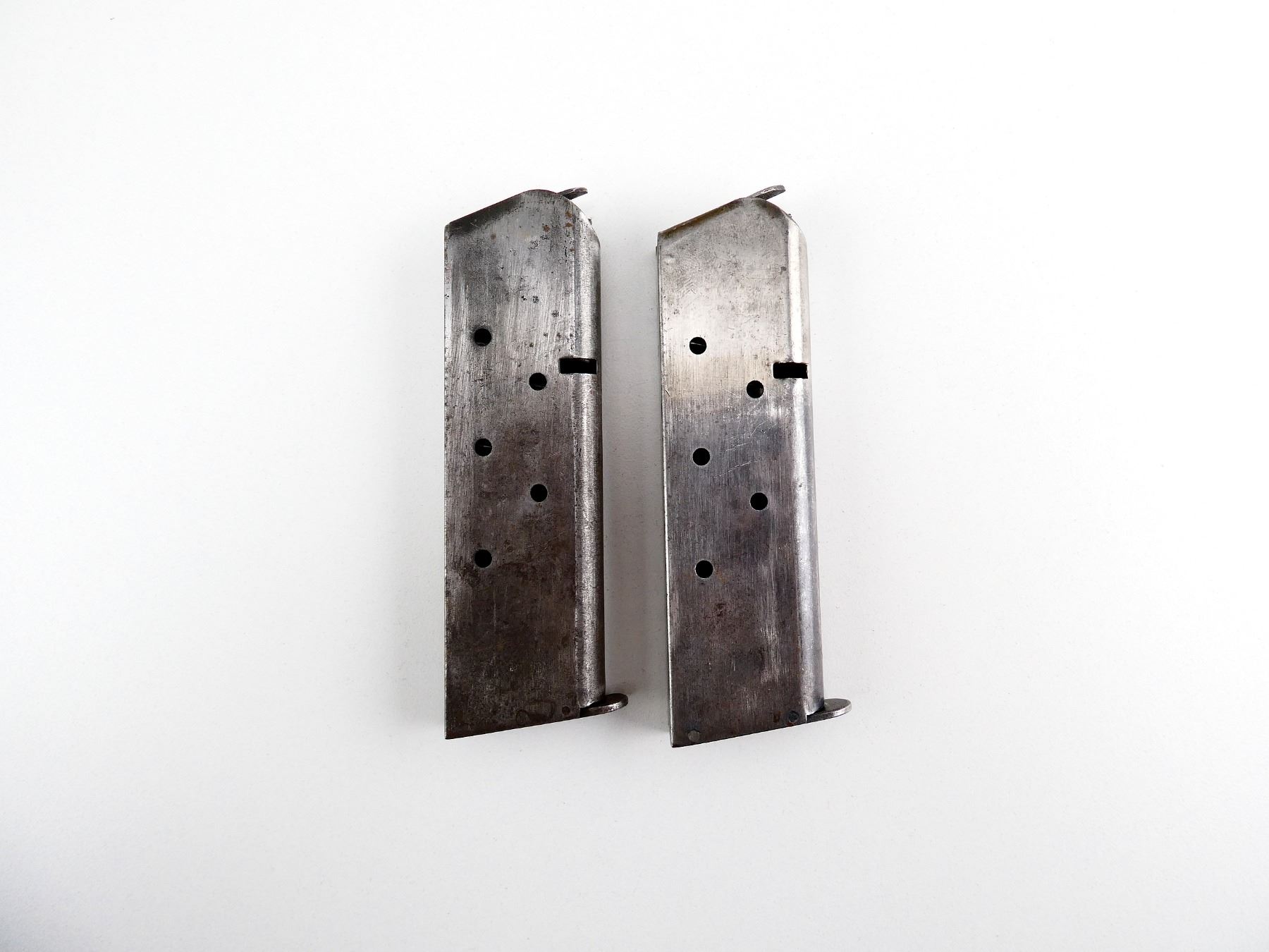 LOT INCLUDES; (2) 1911 .45 ACP MAGS, 7 RNDS, TWO-TONED STEEL CONSTRUCTION, UNMARKED. SEE PHOTOS. PAL REQUIRED.