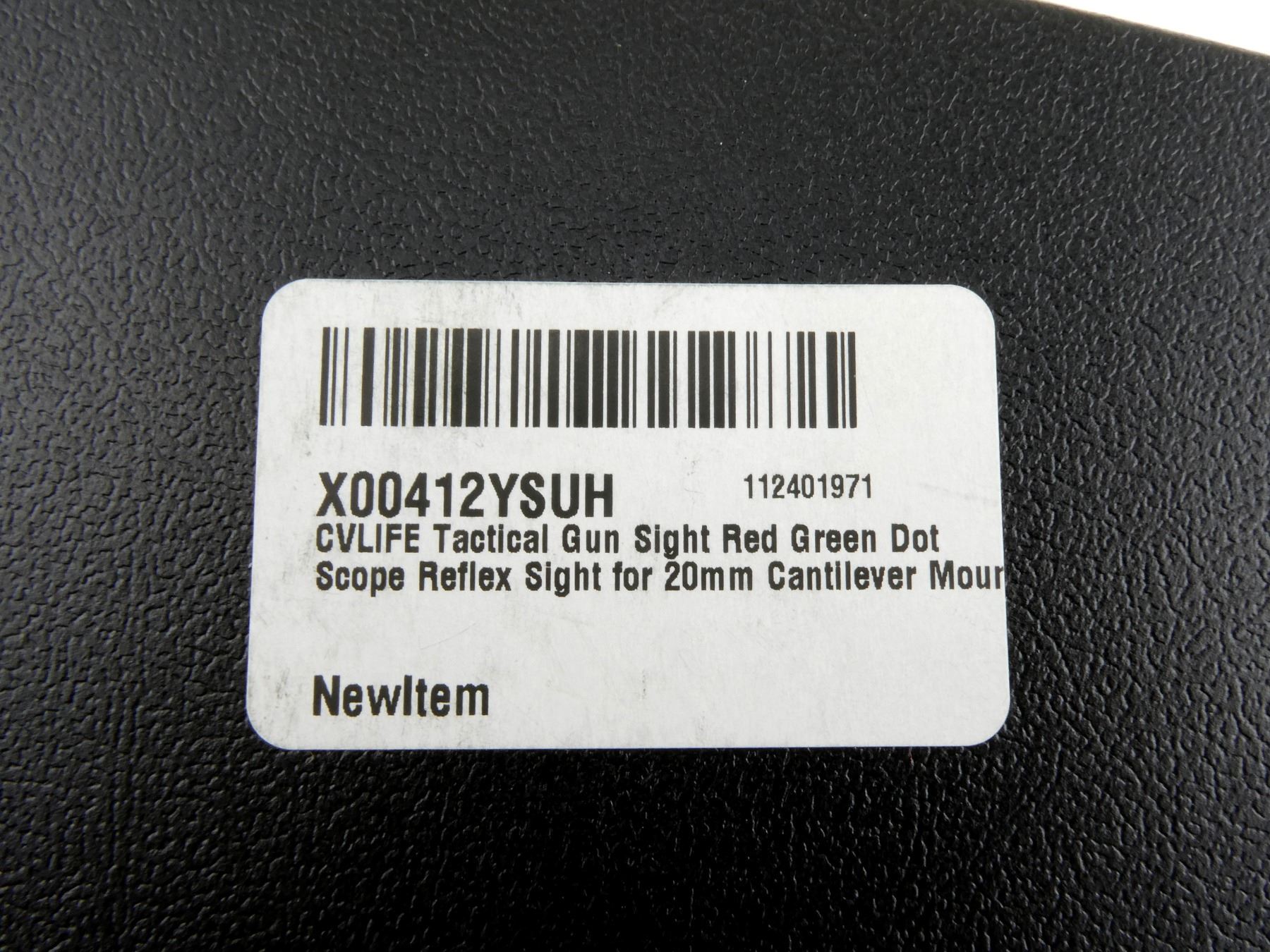 (1) CLEAR OPTICS, WORKING RED / GREEN DOT RETICLE, WITH VARIOUS BRIGHTNESS SETTINGS, 40MM TUBE DIAMETER, WINDAGE & ELEVATION KNOBS TURN, NOS WITH MOUNTING BASE, FLIP UP LENS COVERS, INSTRUCTION MANUAL & ORIGINAL BOX. SEE PHOTOS.