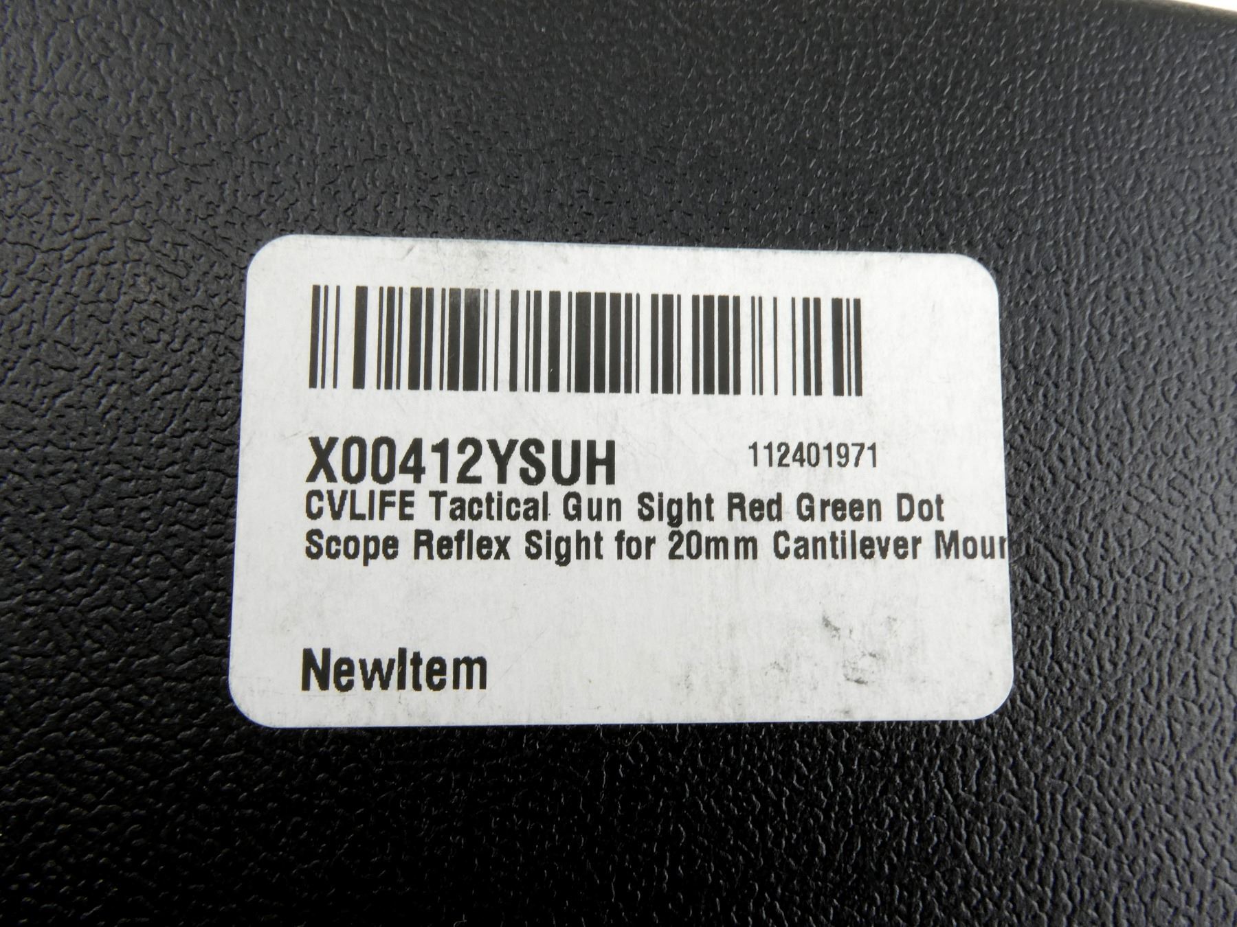 (1) CLEAR OPTICS, WORKING RED / GREEN DOT RETICLE, WITH VARIOUS BRIGHTNESS SETTINGS, 40MM TUBE DIAMETER, WINDAGE & ELEVATION KNOBS TURN, NOS WITH MOUNTING BASE, FLIP UP LENS COVERS, INSTRUCTION MANUAL & ORIGINAL BOX. SEE PHOTOS.