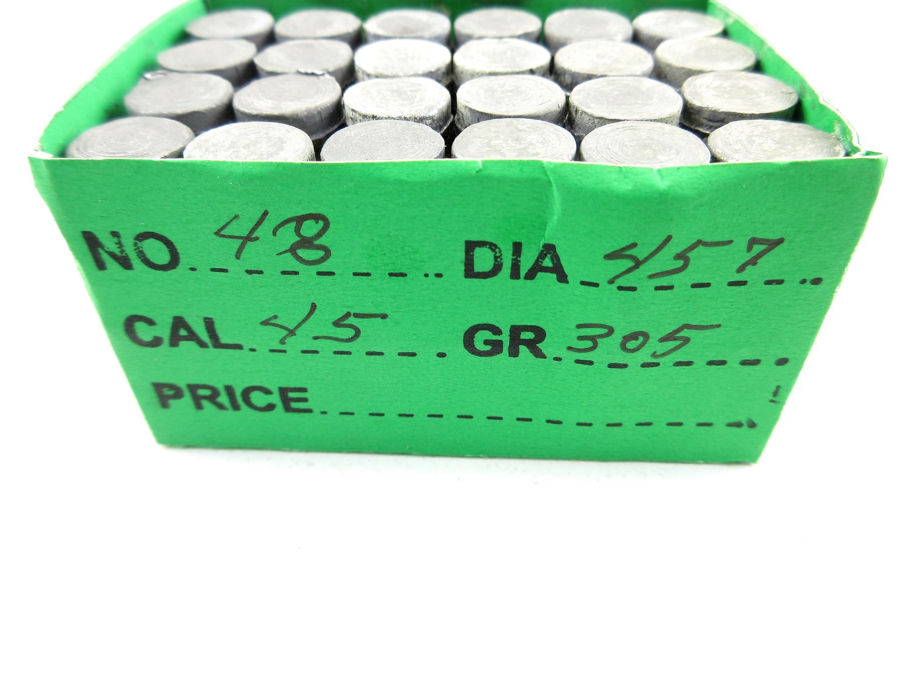 LOT INCLUDES; APPROX. (96) LEAD BULLETS, APPROX. DIA .457", CONSIGNOR STATES; "305 GRNS", NOT CONFIRMED.