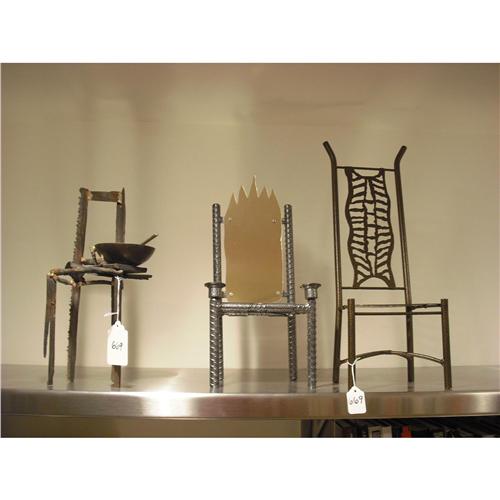 3 Miniature chairs. 2 powder coated welded frames, one welded open framework design signed "CD 1997...