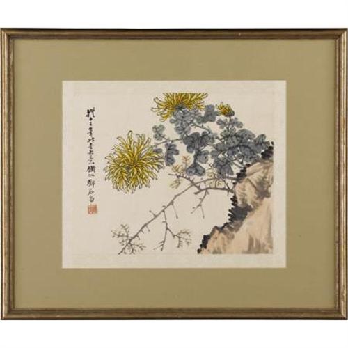 <B>Unknown Artist </B></I>(Chinese)<BR><I>Chrysanthemums<BR></B></I>Watercolor on paper, matted and framed<BR>20-3/4 x 24-1/5 (8.17 x 9.53 cm)<BR>Signed<BR><BR>This painting was reproduced by Art Dallas for use in the Anatole Model Rooms.<BR><BR><BR><BR><b>Shipping:</b> Requires 3rd Party Shipping (<a target="_blank" href="http://www.heritageauctions.com/common/shipping.php">view shipping information</a>)
