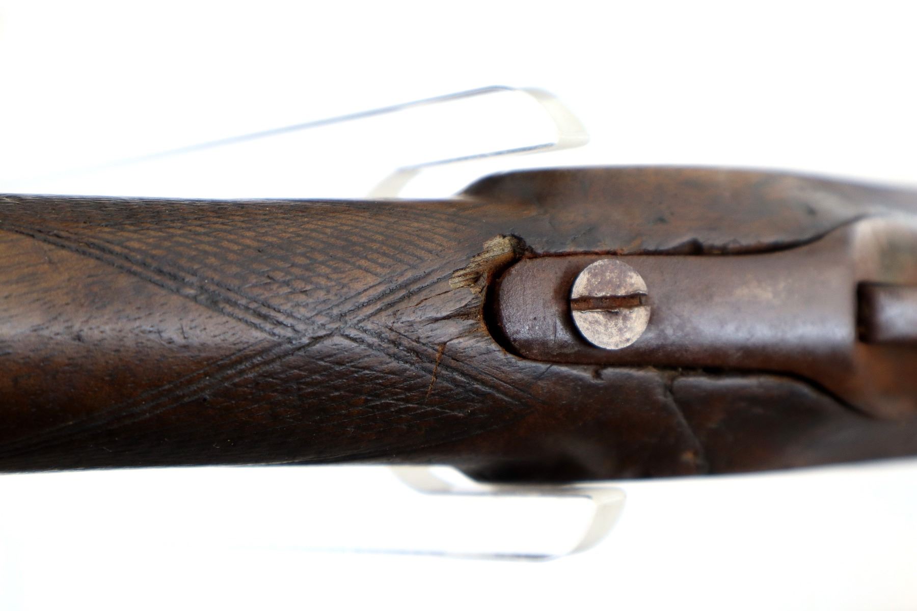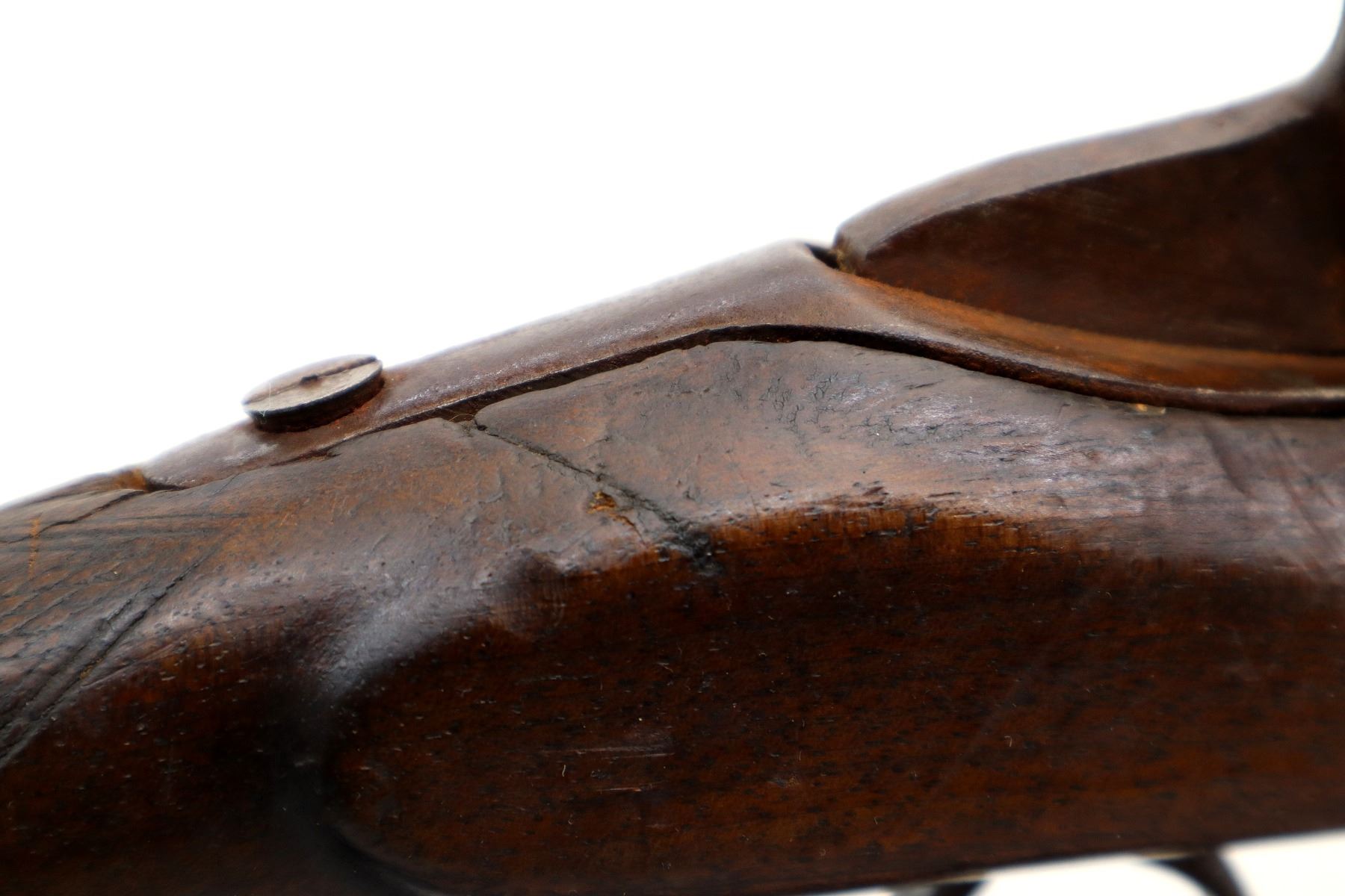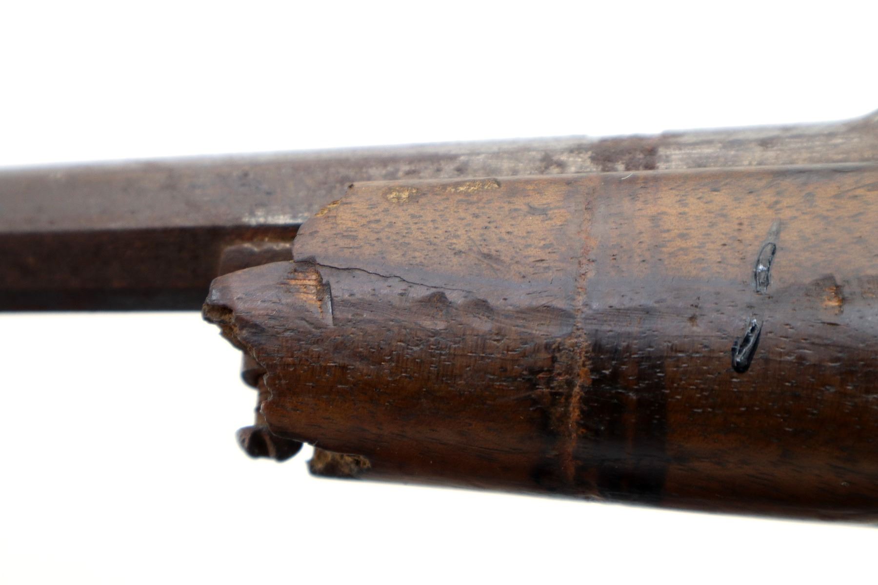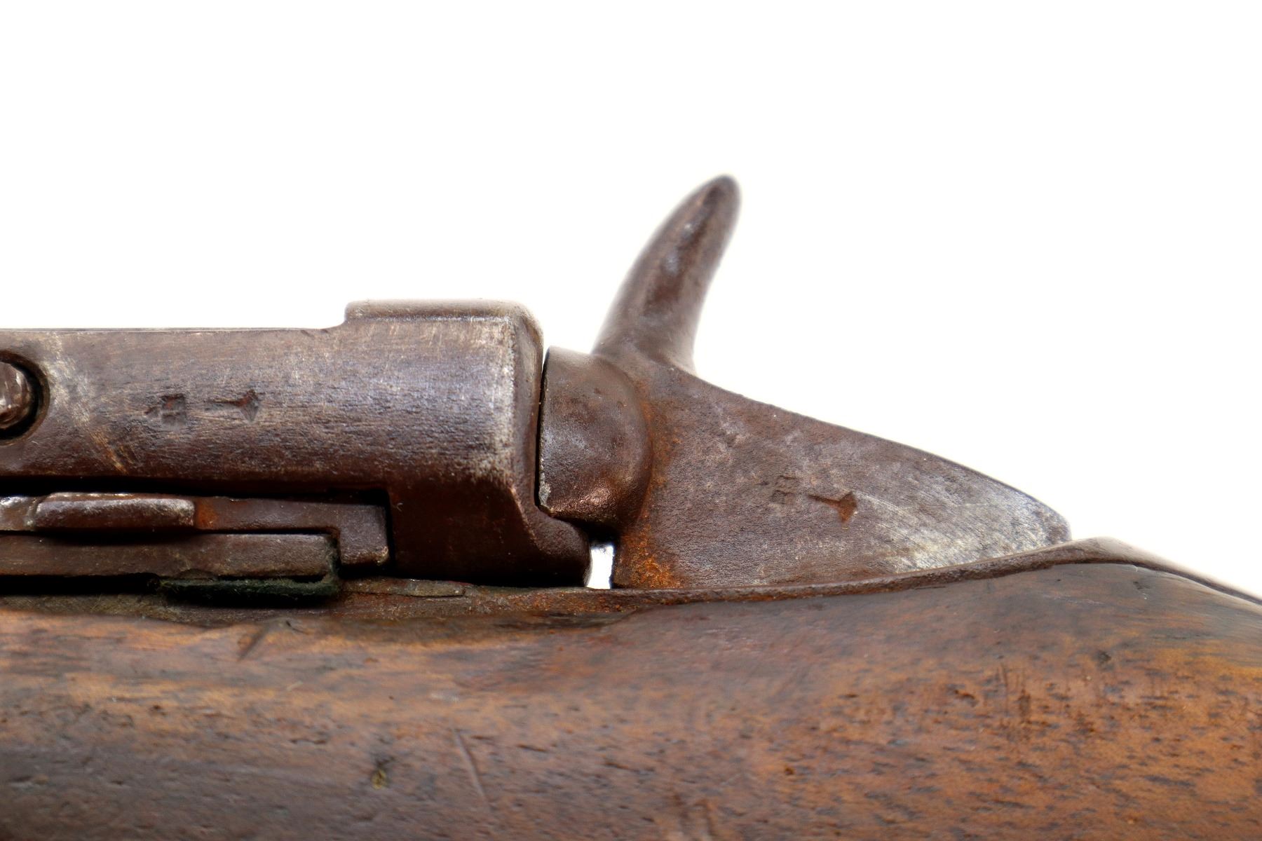 Wear: Metal finish turning brown with pitting, rust, scratches, handling marks and wear. Stock shows some marks, scratches and wear.