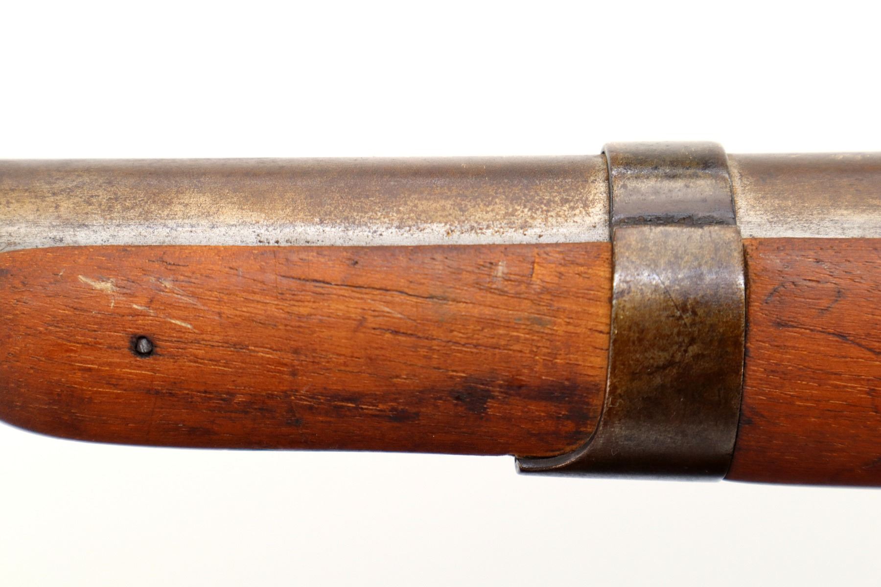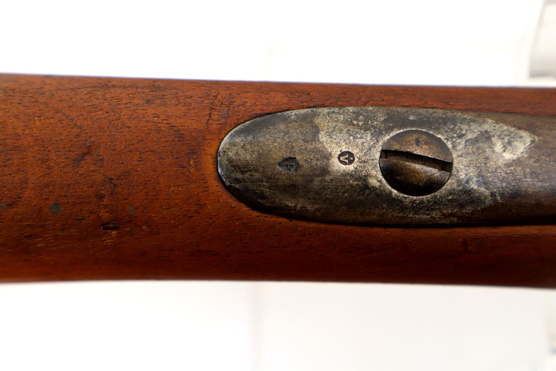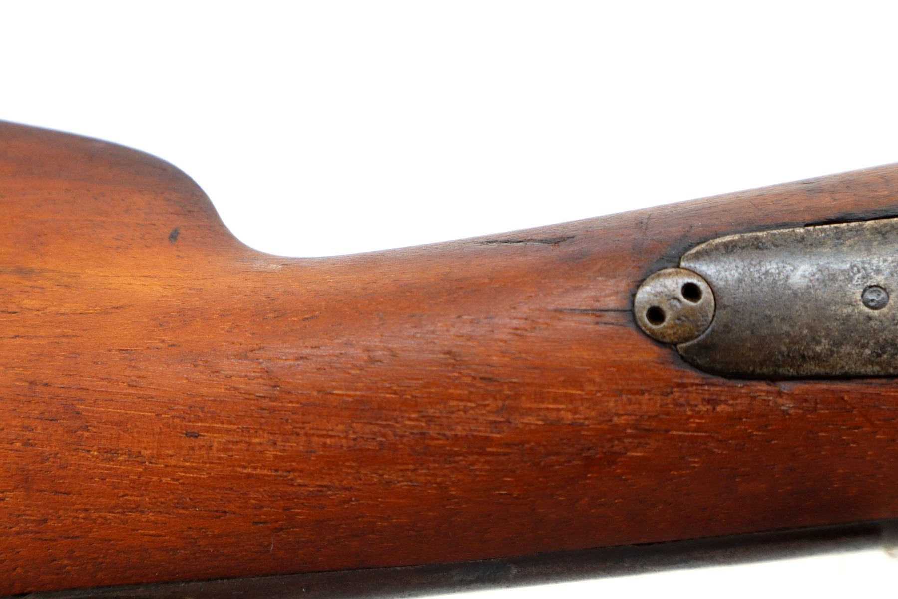 Main Description: Broken bead, missing rear sight, tapered round barrel, bolt is loose missing firing pin chipped and cracked, back action lock with checkered spur hammer that functions. One piece half length wood stock, straight grip cracked behind receiver, smooth steel butt plate, steel trigger guard.