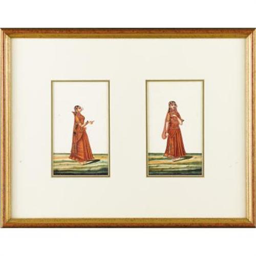 <B>Unknown Artist </B></I>(British Colonial)<B><BR></B></I><I>Pair of Indian Ladies</B></I>, Circa 1828-1830<I><BR></B></I>Watercolor on J. Whatman Paper<BR>7 x 4 inches each, matted and framed 17 1/2 x 13 1/2 inches (2.76 x 1.57 cm, 6.89 x 5.31 cm)<BR><BR><BR><BR><b>Shipping:</b> Requires 3rd Party Shipping (<a target="_blank" href="http://www.heritageauctions.com/common/shipping.php">view shipping information</a>)