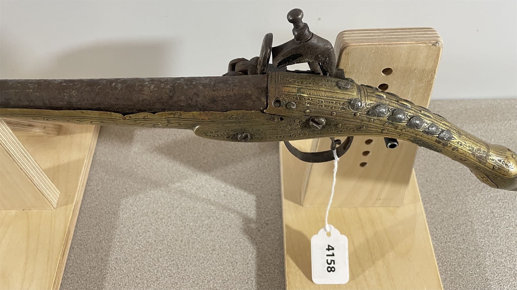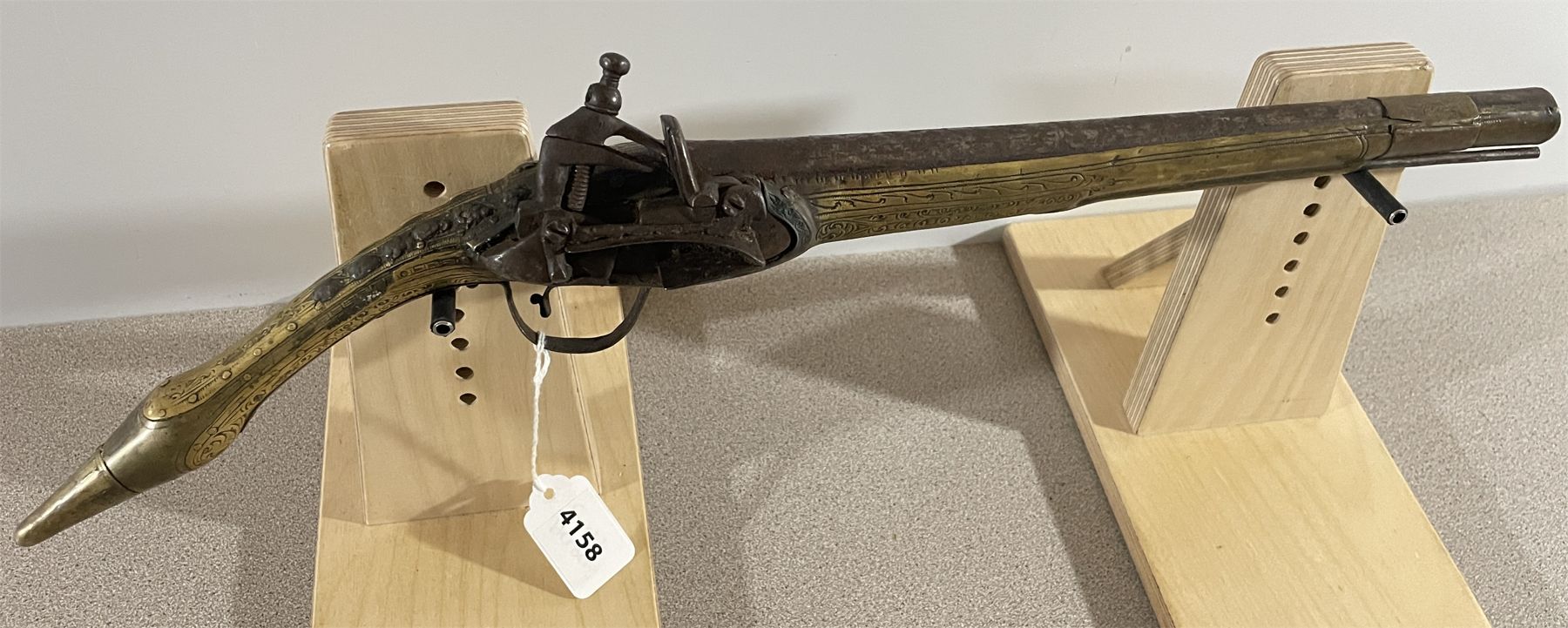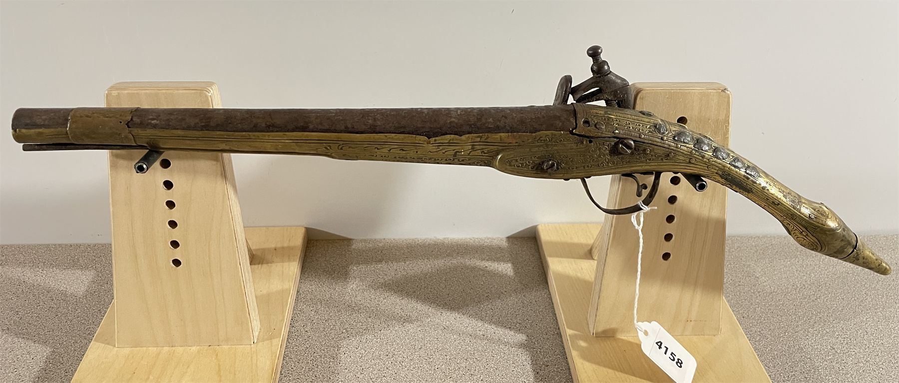 CONDITION: P - NON FUNCTIONING. SPECS: FACTORY ENGRAVED BRASS HARDWARE. 11.5 INCH BARREL. EXTRAS: NONE. S/N: NONE.